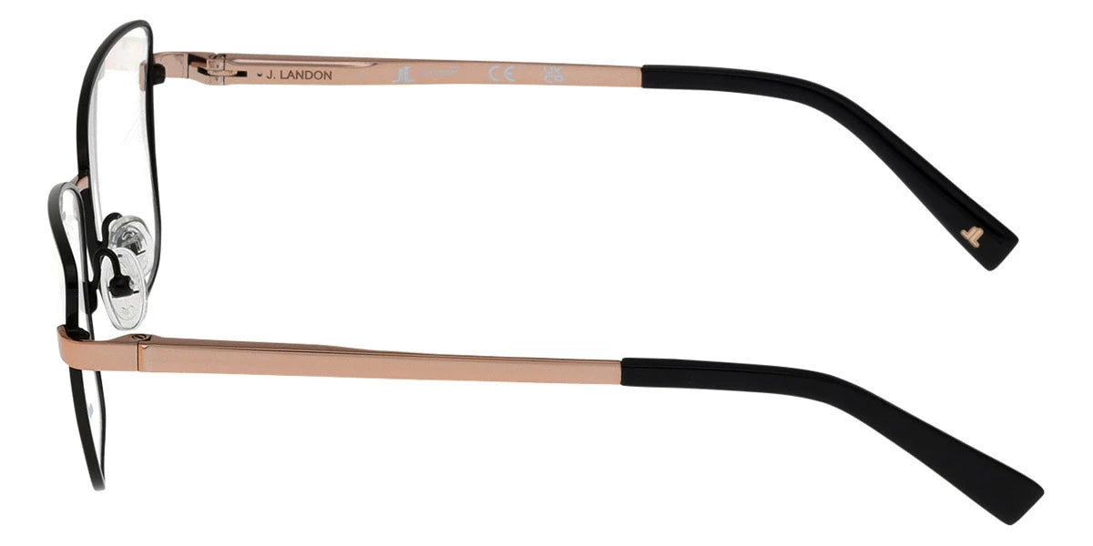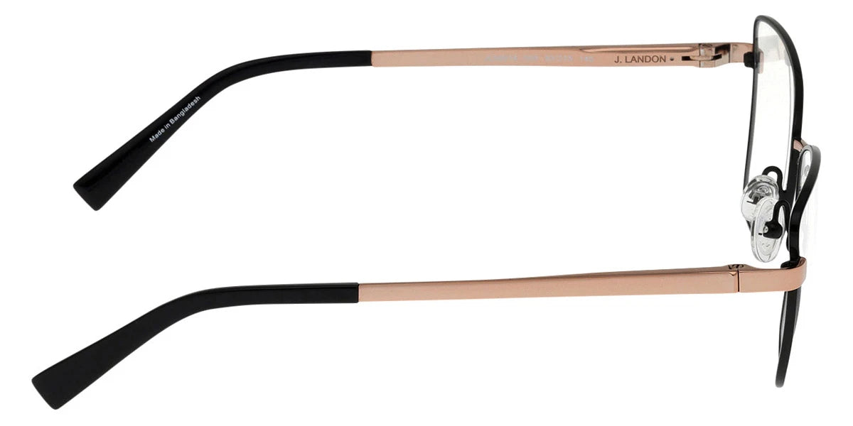 Shiny Black/Shiny Rose Gold (005) Eyeglasses (JL50014 005 53) by J. Landon™. Size: 53-15-140, Shape: Cat-Eye, Material: Metal.