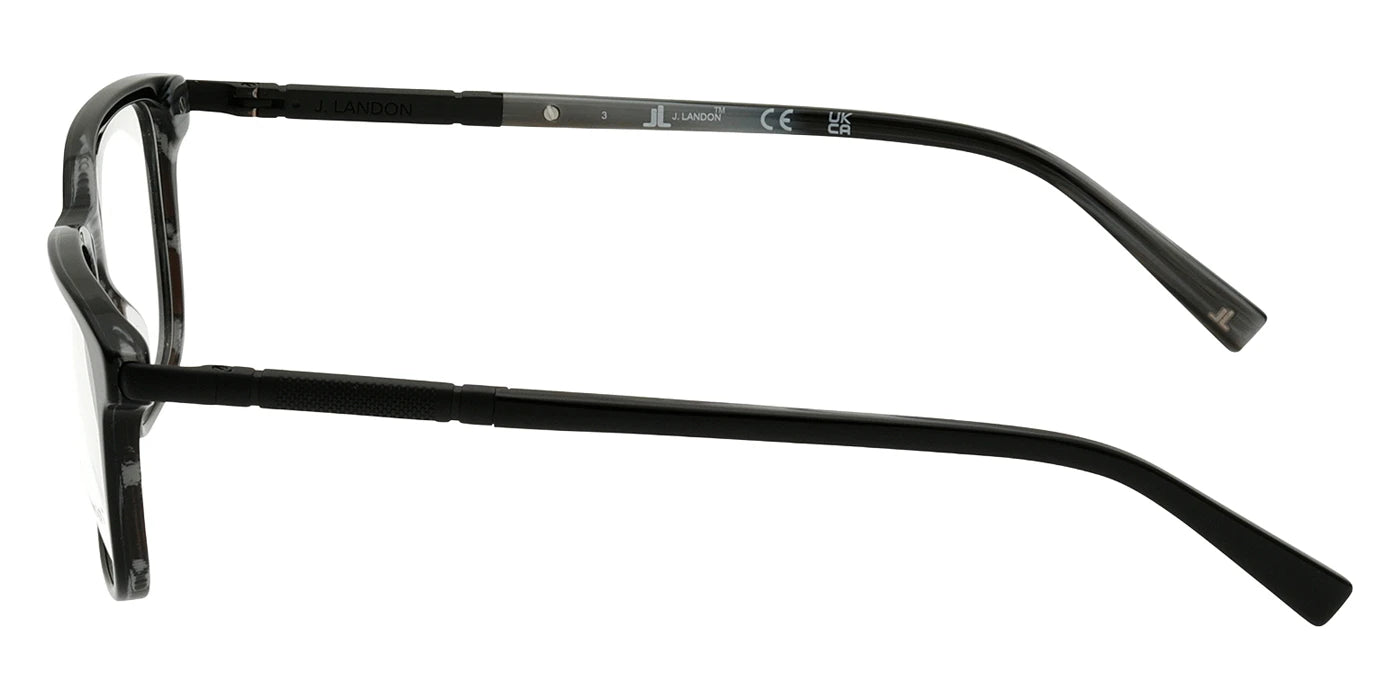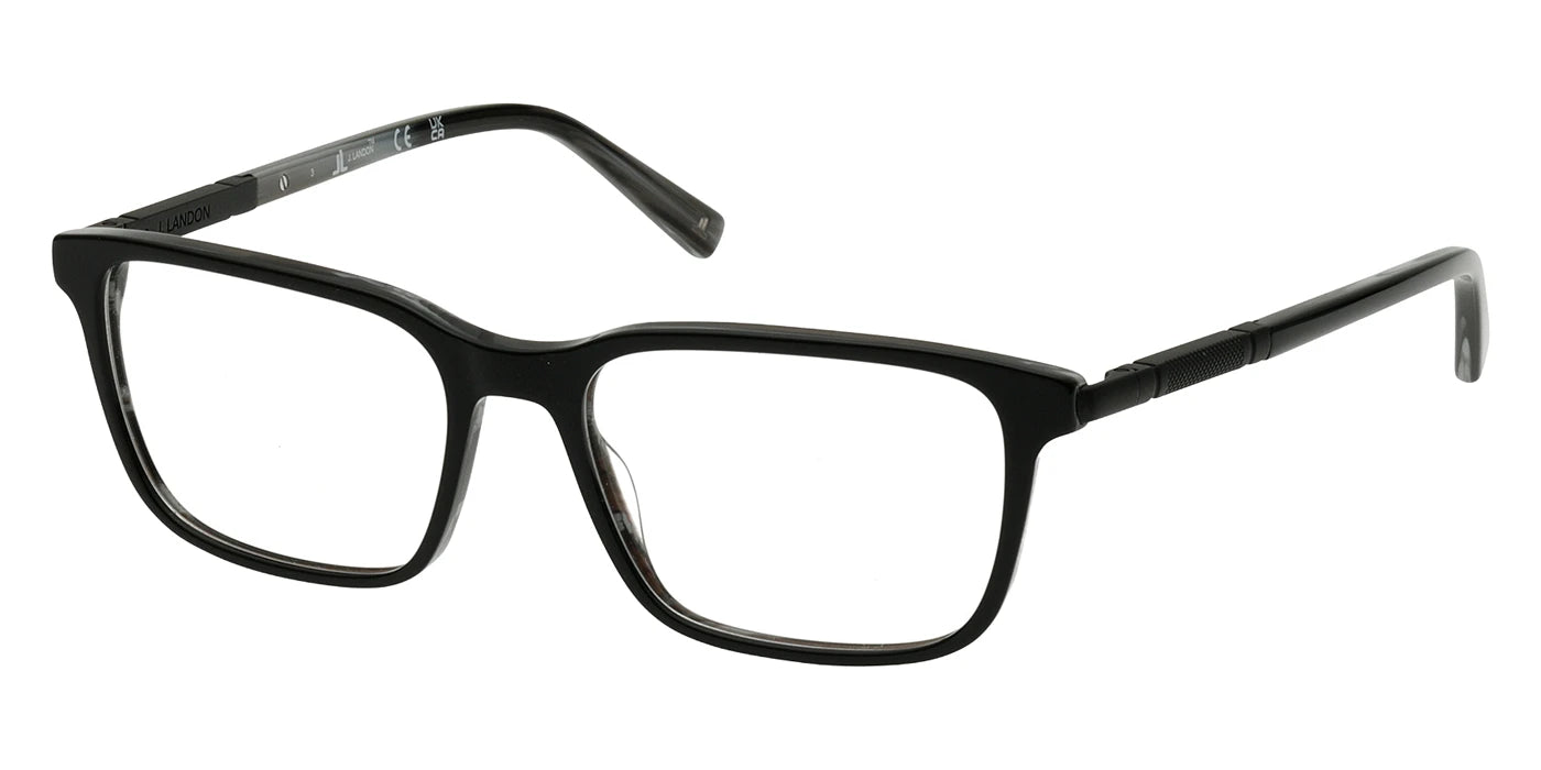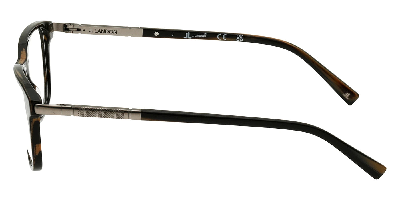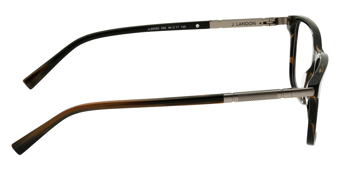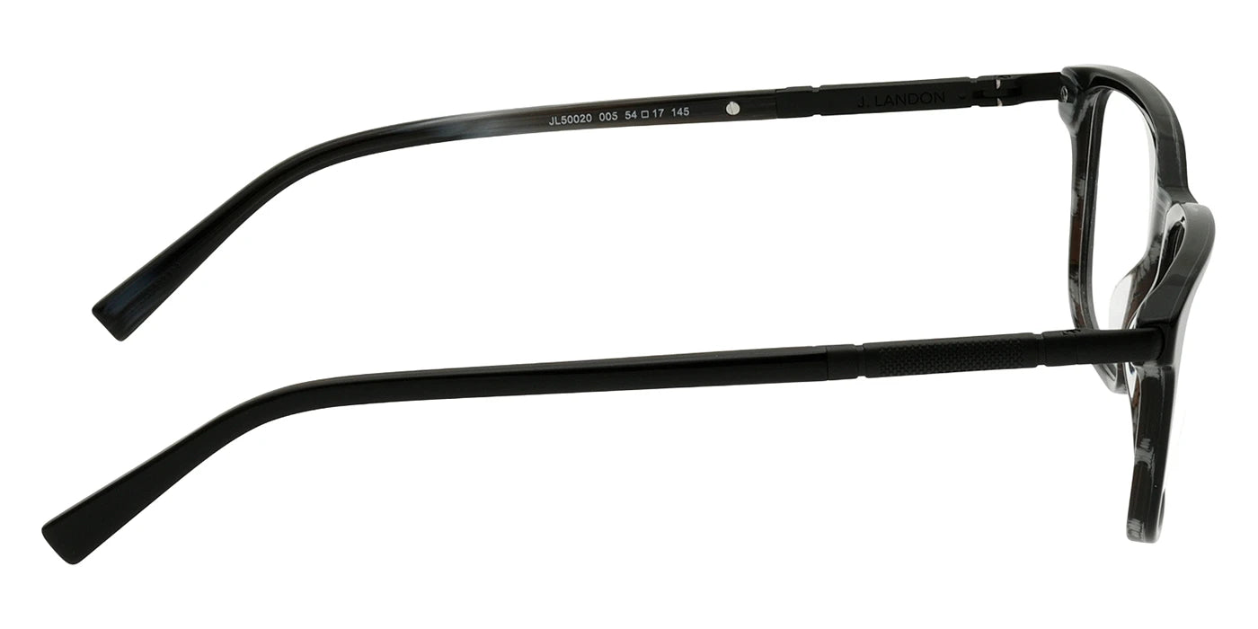 Black/Horn (005) Eyeglasses (JL50020 005 54) by J. Landon™. Size: 54-17-145, Shape: Square, Material: Plastic.