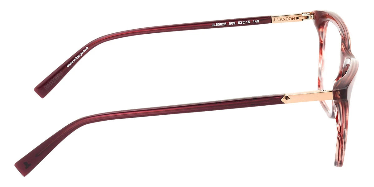 JL50022 Eyeglasses by J. Landon™. The cat-eye shape design feature a full rim plastic frame. This model is available in three different color combinations and sizes. With a diverse range of styles, colors, and shapes, J. Landon caters to the tastes and preferences of individuals from all walks of life. Whether it's a classic look for a formal event or a bold statement for everyday wear, J. Landon's eyeglass collection has something for everyone. Embracing the latest technology and innovative designs, J. Landon continues to push the boundaries of what's possible in the eyewear industry. Each pair is carefully crafted to provide optimal comfort, ensuring customers can enjoy their glasses for extended periods without compromise. As a brand that understands the value of individual expression, J. Landon empowers wearers to embrace their unique style and personality through their eyewear choices. Through its partnership with the Marcolin Group, the brand looks poised to become a global icon in the eyewear industry, redefining how people perceive and experience their glasses. From trendsetters to professionals and everyone in between, J. Landon delivers eyewear that complements and enhances their diverse lifestyles.