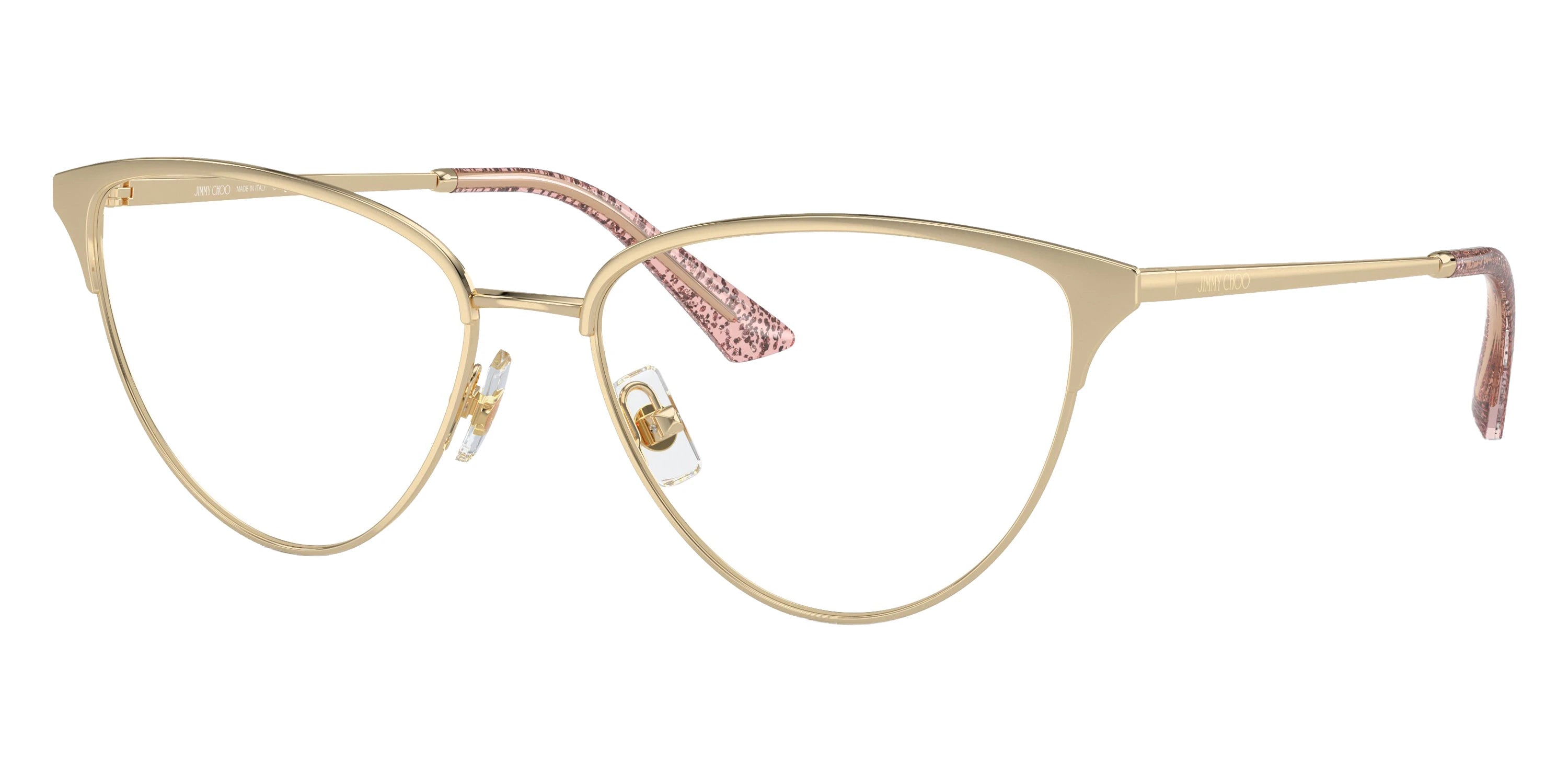 Pale Gold/Black (3015) Eyeglasses (JC2002 3015 55) by Jimmy Choo™. Size: 55-16-140, Shape: Cat-Eye, Material: Metal.