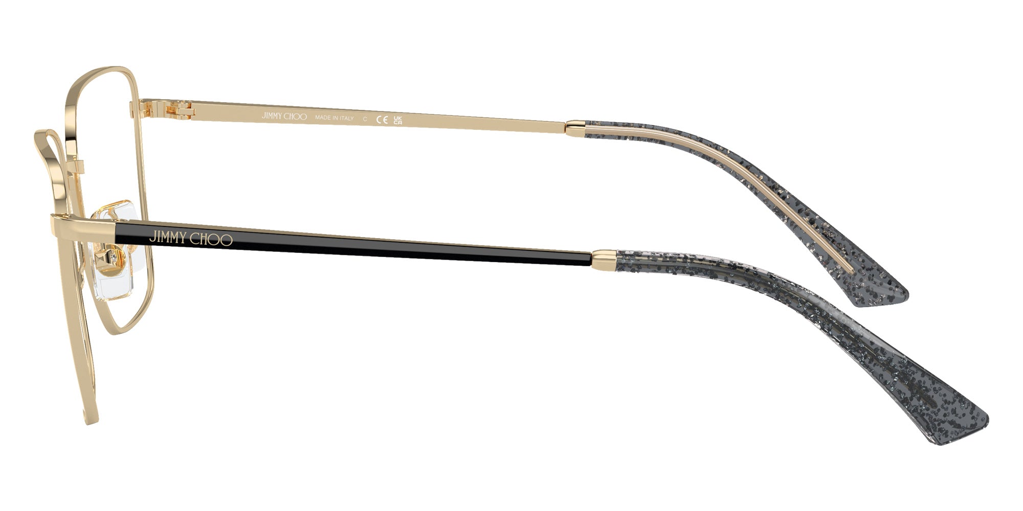 Pale Gold/Black (3017) Eyeglasses (JC2003 3017 55) by Jimmy Choo™. Size: 55-17-140, Shape: Square, Material: Metal.