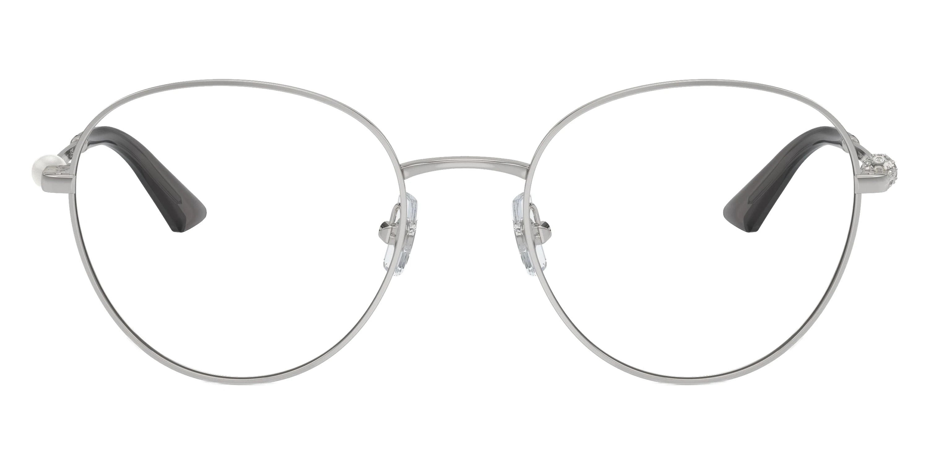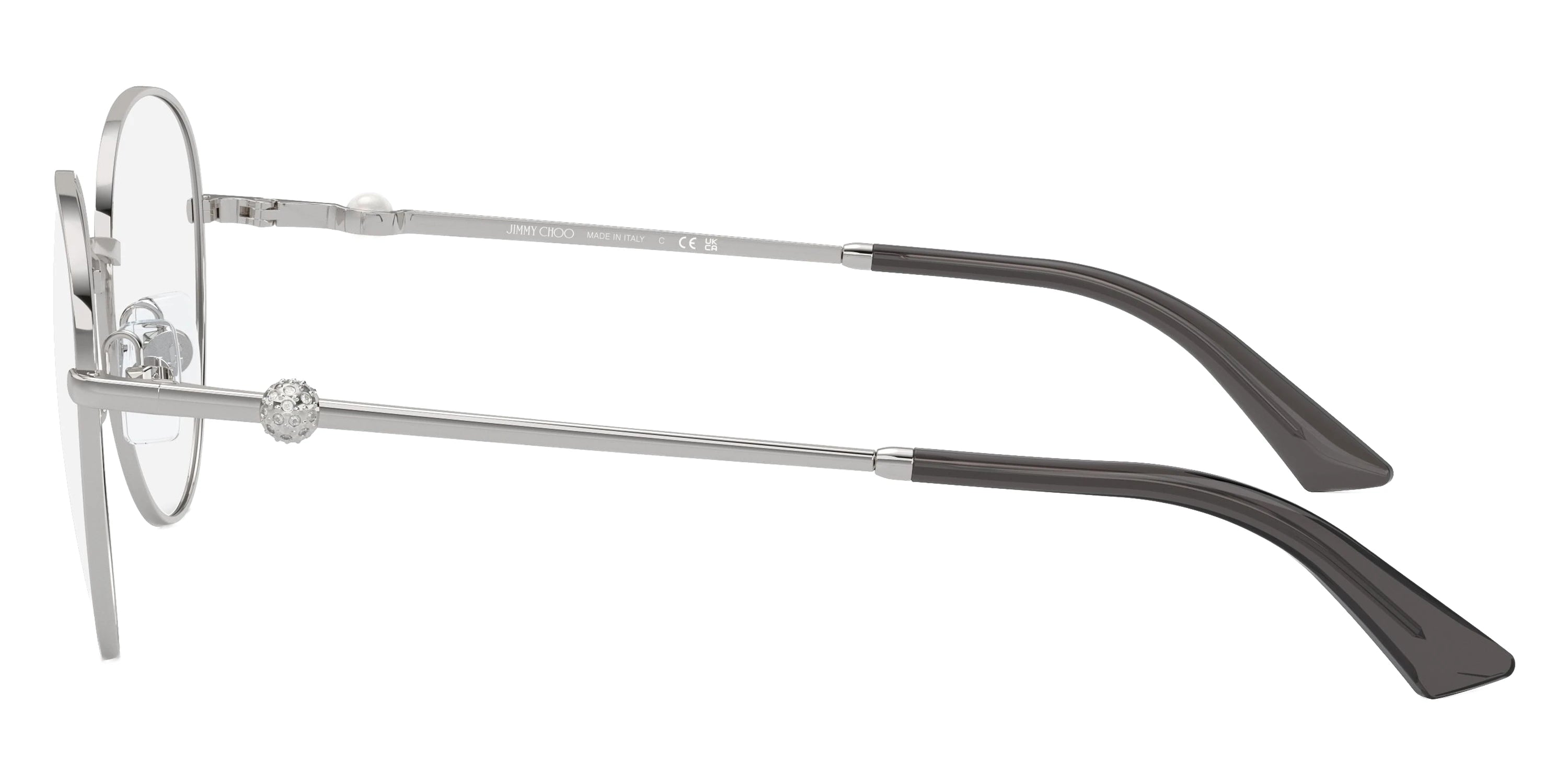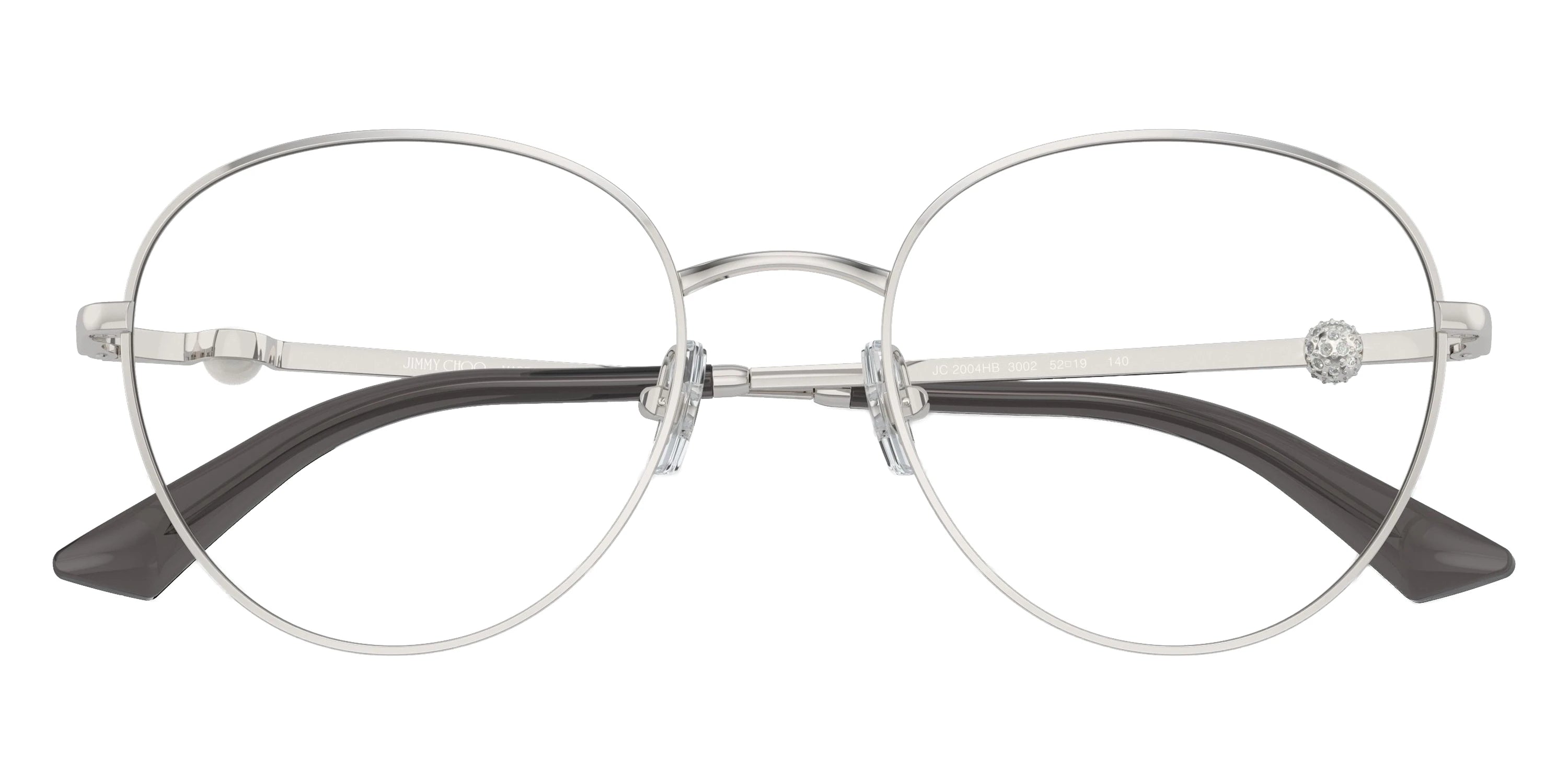 Silver (3002) Eyeglasses (JC2004HB 3002 50) by Jimmy Choo™. Size: 50-19-140, Shape: Round, Material: Metal.