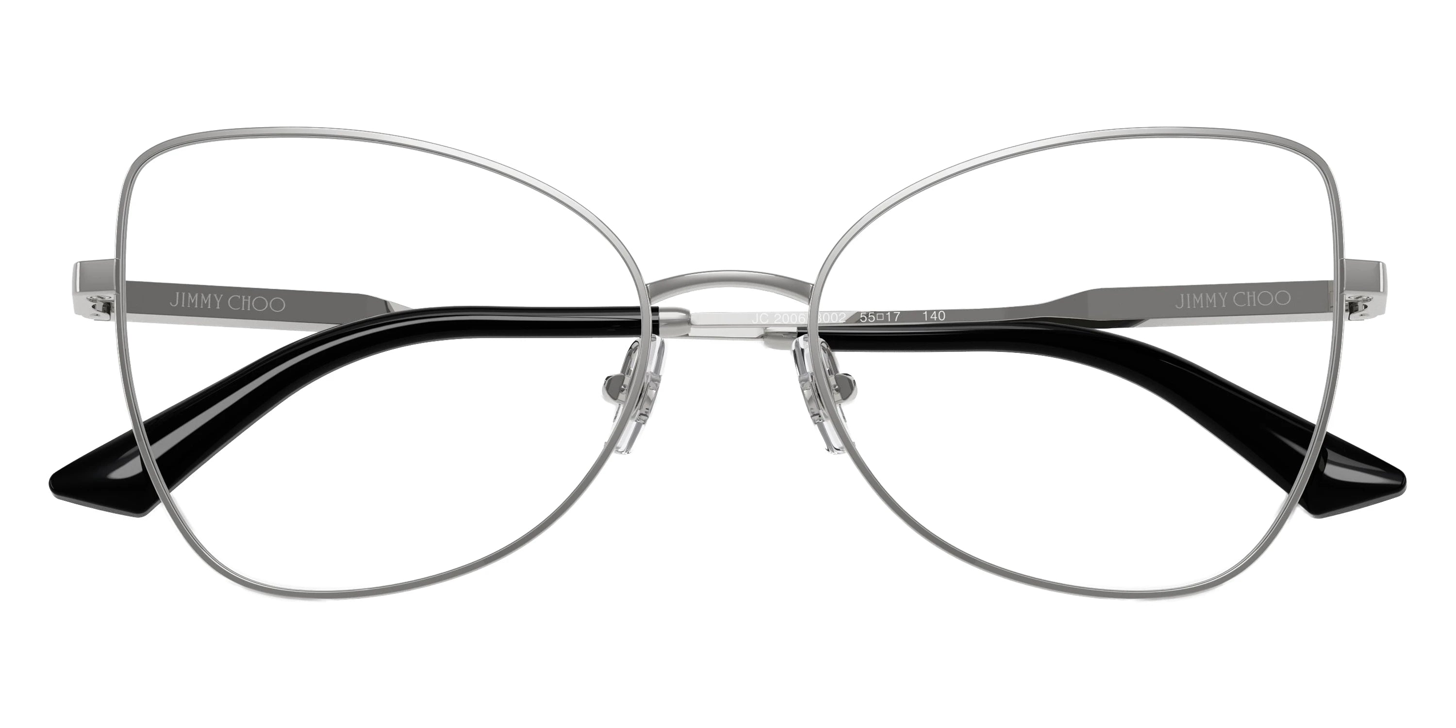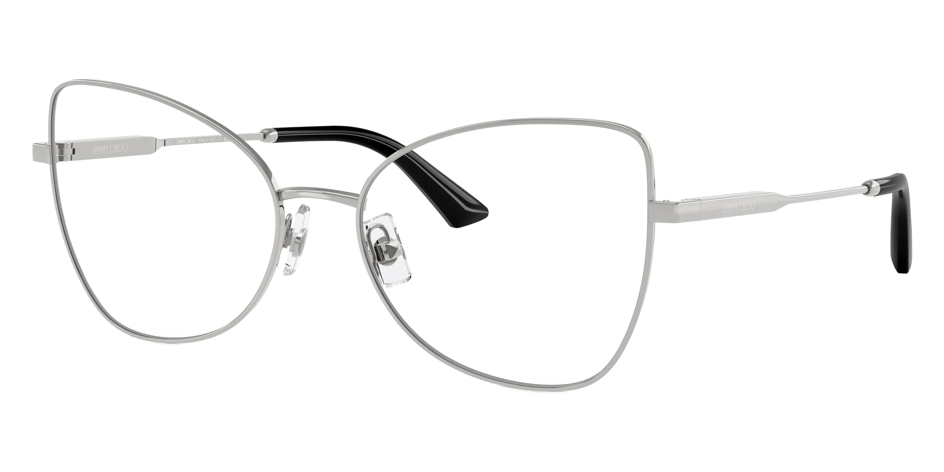 JC2006 Eyeglasses by Jimmy Choo™. The butterfly shape design feature a full rim steel and metal frame. This model is available in eight different color combinations and sizes. Jimmy Choo eyewear embodies high fashion and refined glamor for those who demand style and sophistication in every detail. Renowned for its luxurious designs and impeccable craftsmanship, Jimmy Choo creates frames that elevate any look—whether on the city streets or at an elegant event. Each pair features premium materials like polished acetate and metal accents, paired with carefully engineered lenses offering full UV protection and crisp clarity. With designs ranging from bold oversized silhouettes to delicate cat-eyes, Jimmy Choo seamlessly blends statement-making style with everyday comfort. The collection celebrates modern femininity and timeless elegance, making every frame a must-have accessory for discerning fashion lovers. Whether attending gala nights or casual brunches, Jimmy Choo eyewear delivers confidence, glamour, and effortless chic.