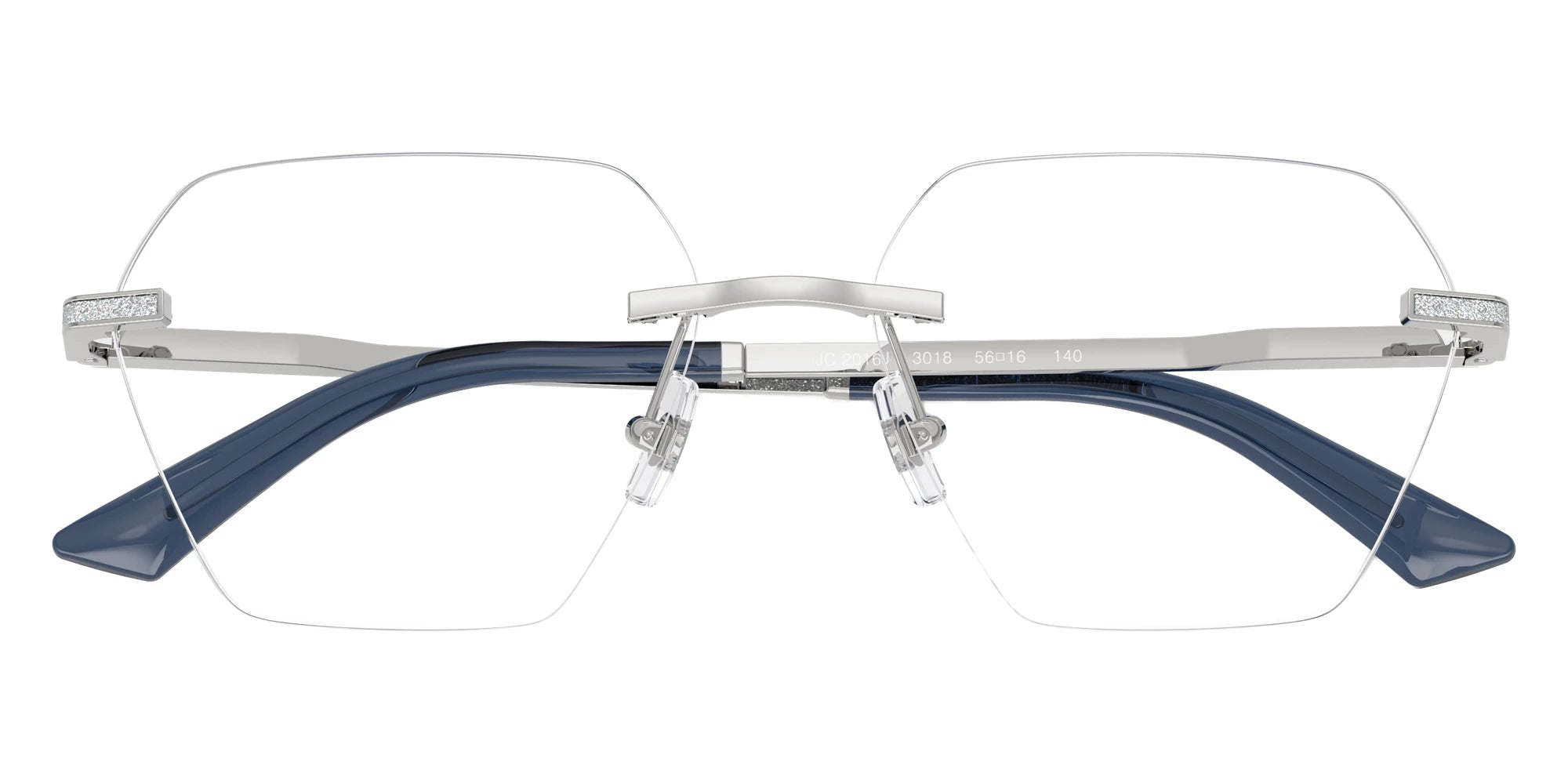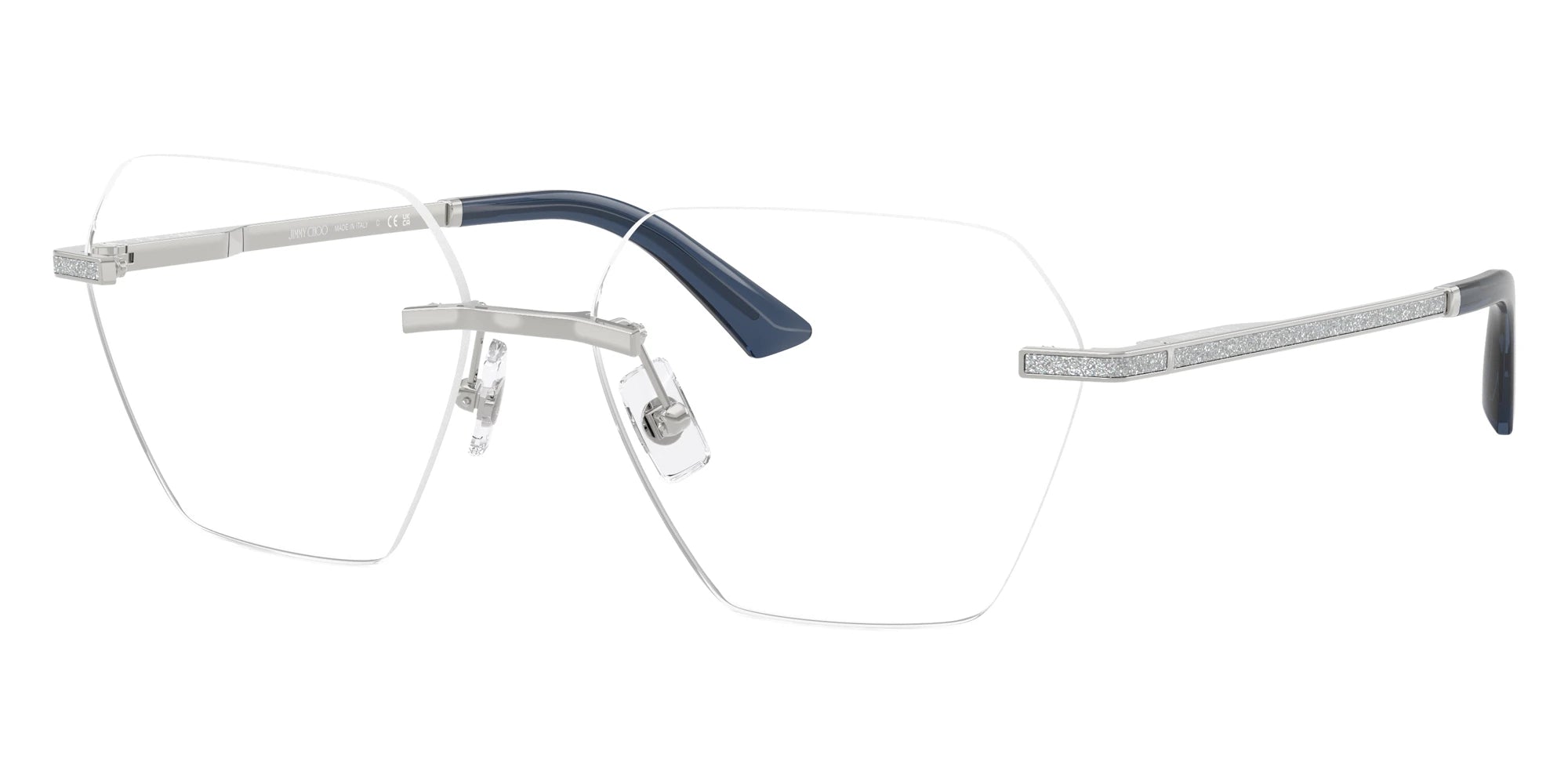 Silver (3018) Eyeglasses (JC2016J 3018 56) by Jimmy Choo™. Size: 56-16-140, Shape: Irregular, Material: Metal.