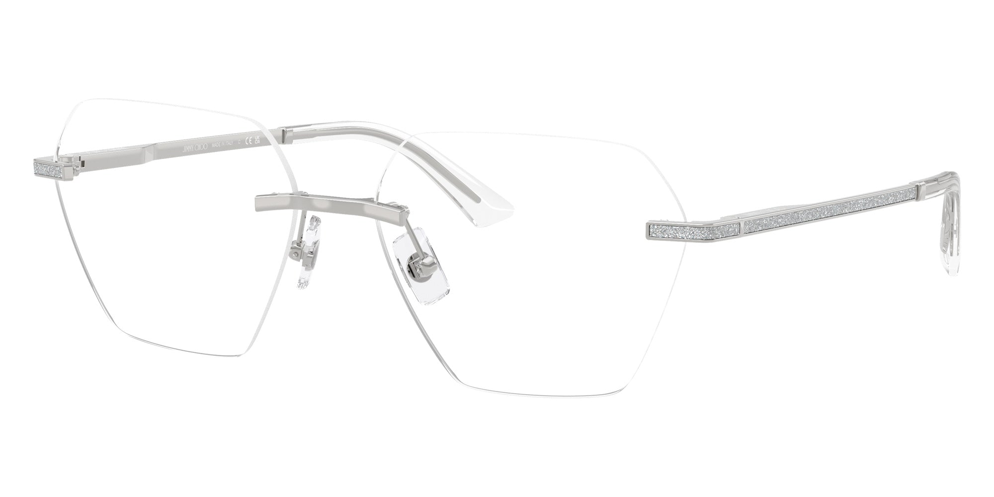 The irregular shape desing feature a rimless metal frame. This model is available in three different color combinations and sizes. Jimmy Choo eyewear embodies high fashion and refined glamor for those who demand style and sophistication in every detail. Renowned for its luxurious designs and impeccable craftsmanship, Jimmy Choo creates frames that elevate any look—whether on the city streets or at an elegant event. Each pair features premium materials like polished acetate and metal accents, paired with carefully engineered lenses offering full UV protection and crisp clarity. With designs ranging from bold oversized silhouettes to delicate cat-eyes, Jimmy Choo seamlessly blends statement-making style with everyday comfort. The collection celebrates modern femininity and timeless elegance, making every frame a must-have accessory for discerning fashion lovers. Whether attending gala nights or casual brunches, Jimmy Choo eyewear delivers confidence, glamour, and effortless chic.