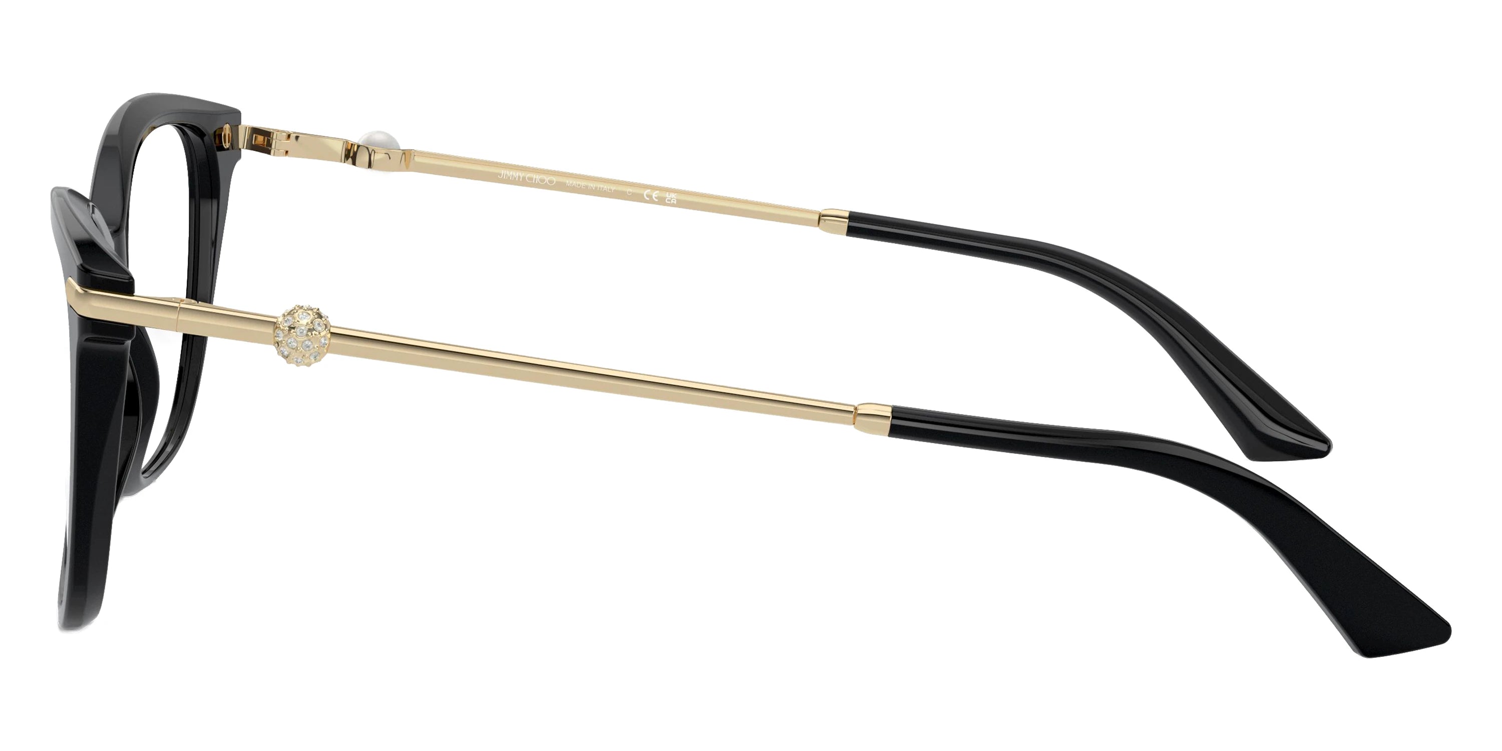 Black/Pale Gold (5000) Eyeglasses (JC3007HB 5000 52) by Jimmy Choo™. Size: 52-17-140, Shape: Square, Material: Acetate and Metal.