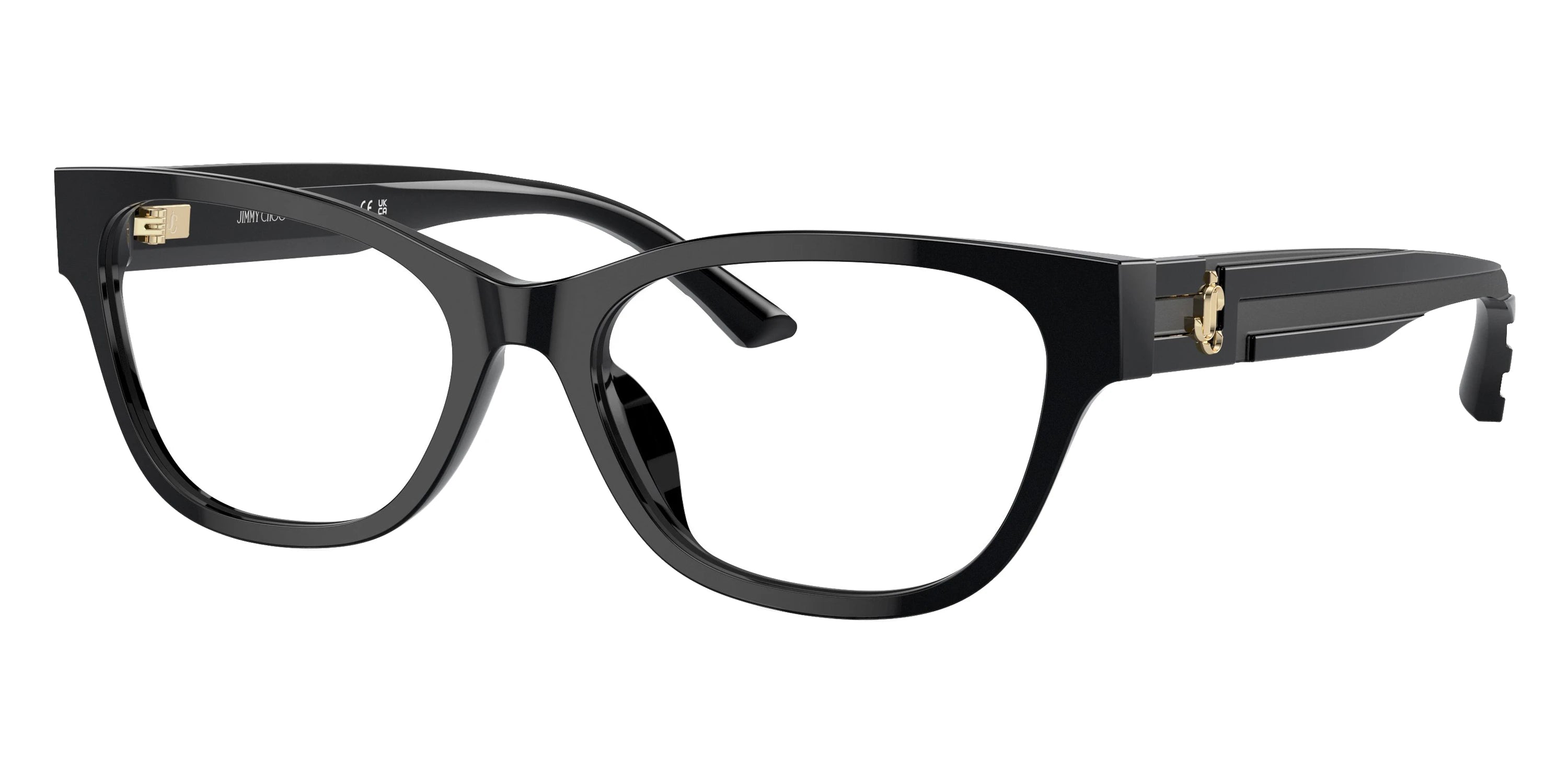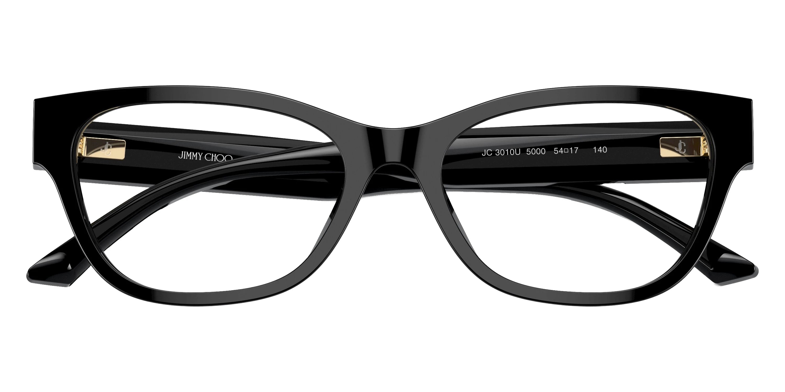 Black/Shiny/Matte Black (5000) Eyeglasses (JC3010U 5000 52) by Jimmy Choo™. Size: 52-17-140, Shape: Cat-Eye, Material: Acetate.