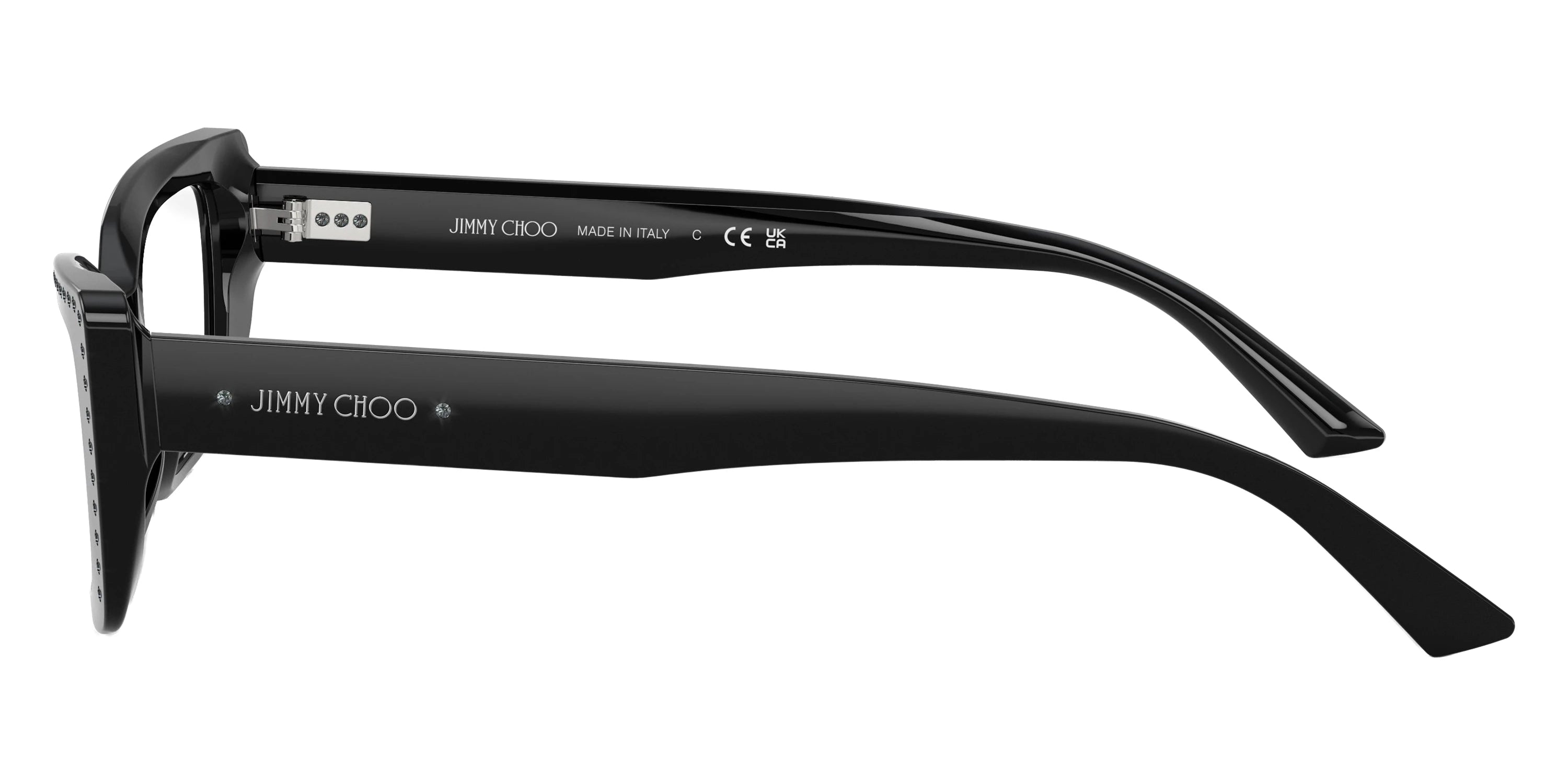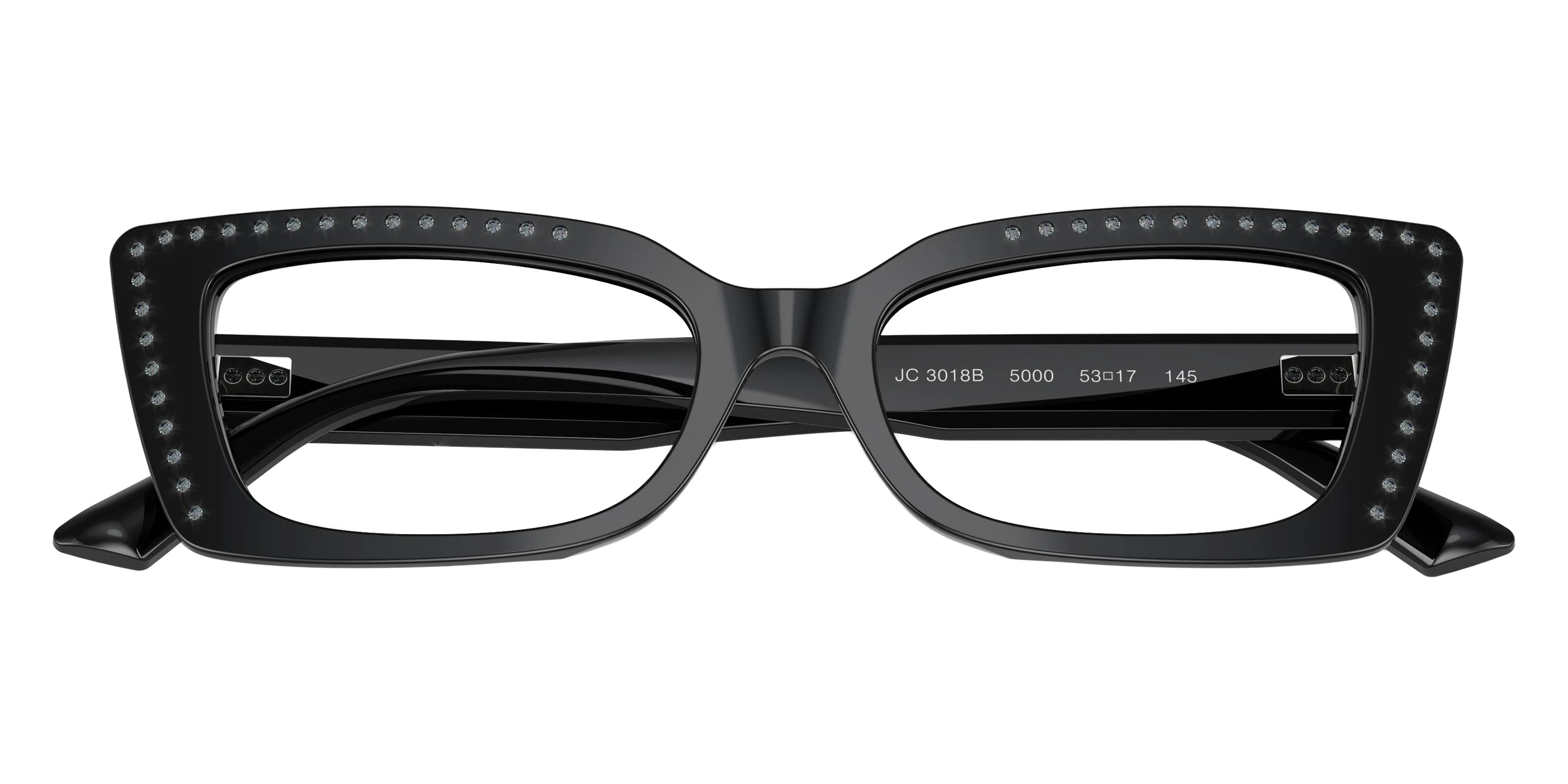 Black/Silver Night (5000) Eyeglasses (JC3018B 5000 51) by Jimmy Choo™. Size: 51-17-145, Shape: Cat-Eye, Material: Acetate.