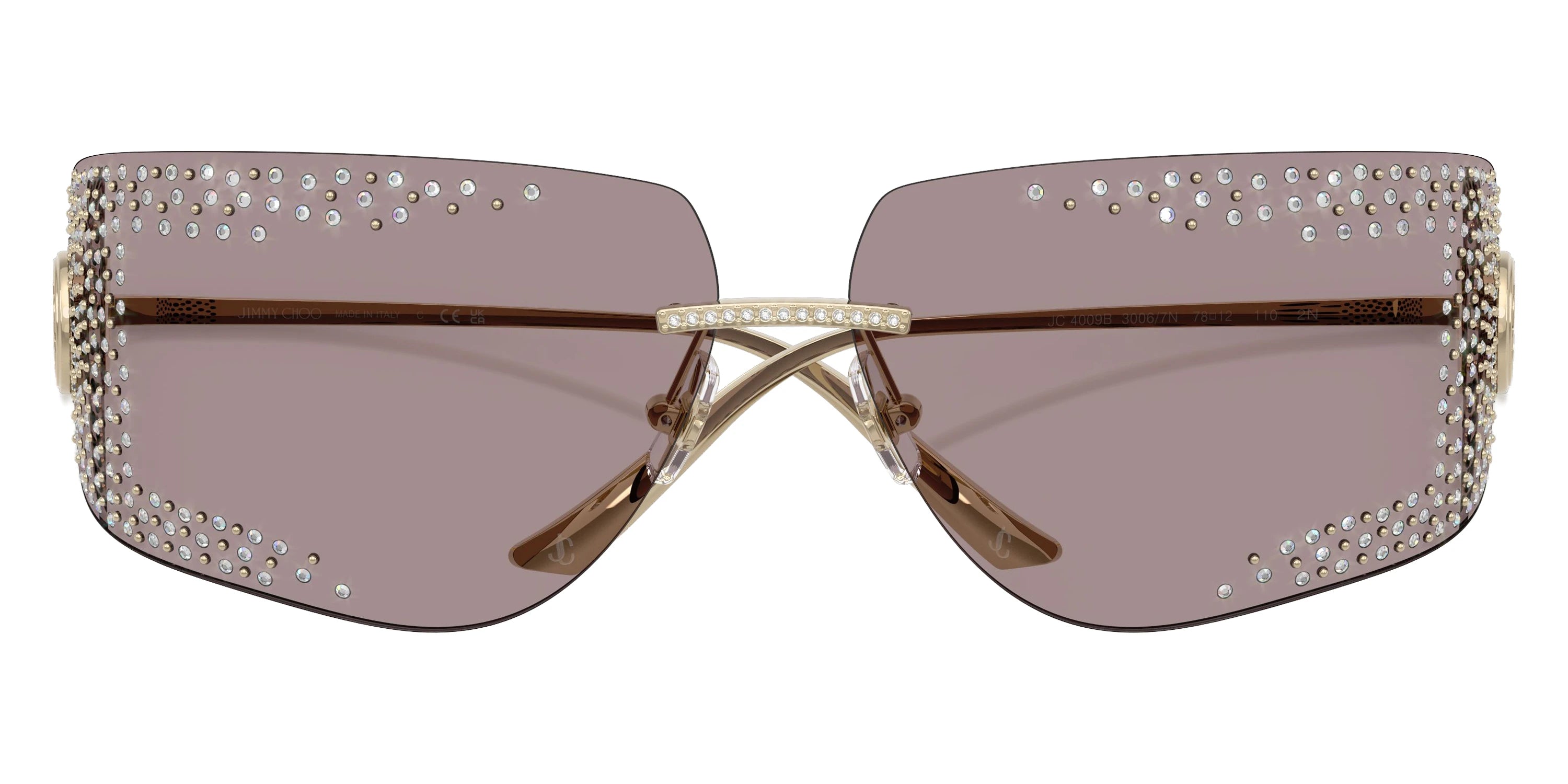 Pale Gold (30067N) Sunglasses with Light Purple Brown lenses (JC4009B 30067N 78) by Jimmy Choo™. Size: 78-12-110, Shape: Square, Material: Metal.