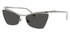 Gunmetal (300487) Sunglasses with Dark Gray lenses (JC4014H 300487 56) by Jimmy Choo™. Size: 56-16-125, Shape: Cat-Eye, Material: Metal.