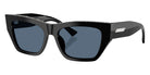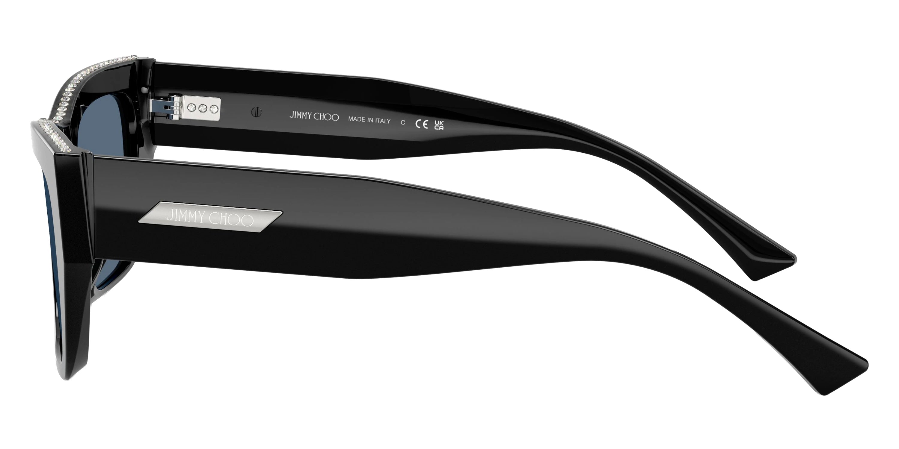 Black (500080) Sunglasses with Dark Blue lenses (JC5035BF 500080 54) by Jimmy Choo™. Size: 54-17-140, Shape: Cat-Eye, Material: Acetate.