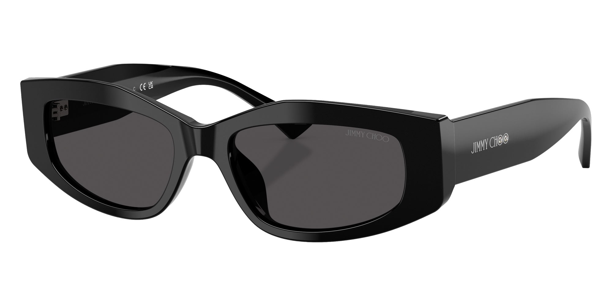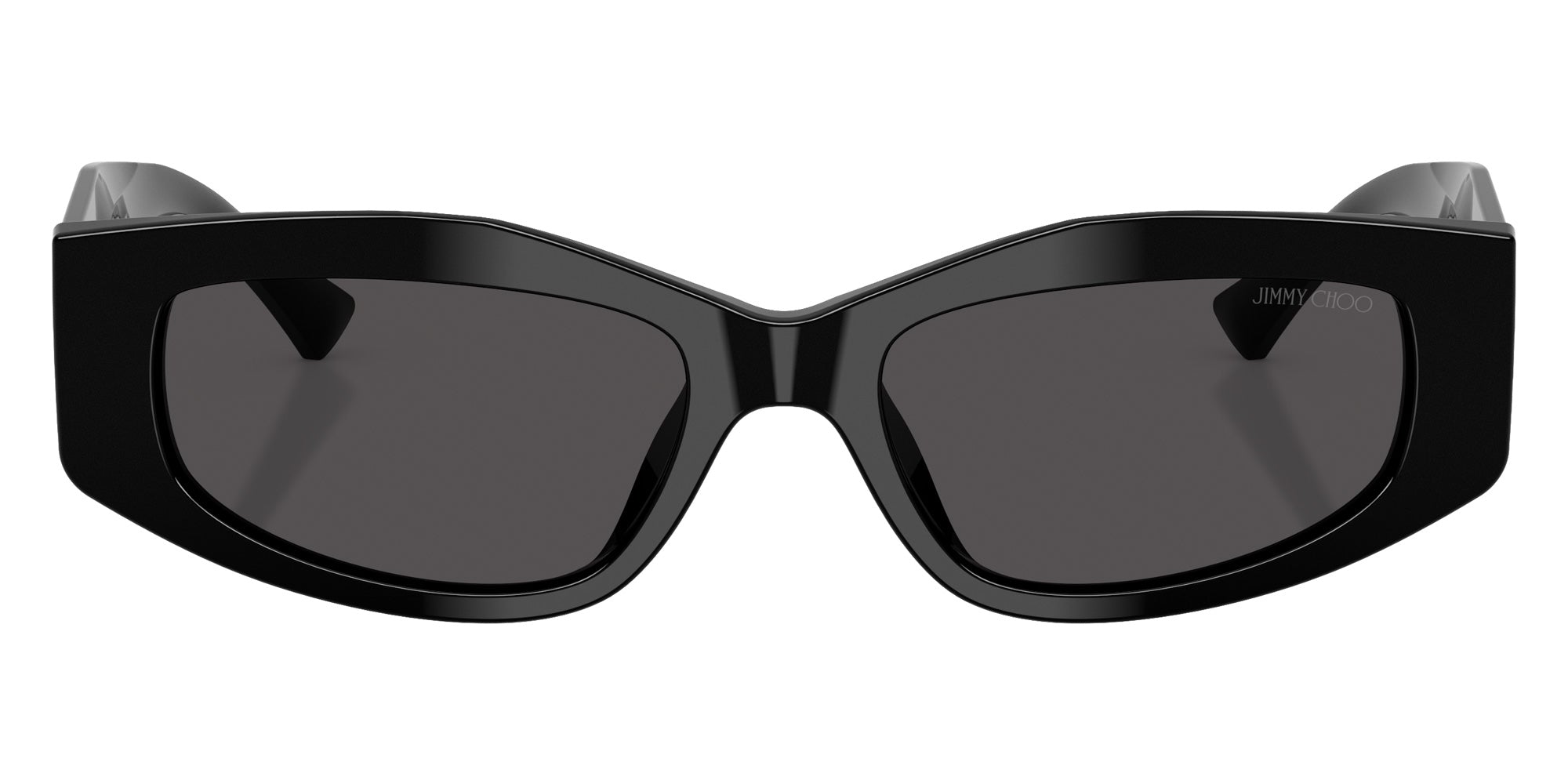 Black (500087) Sunglasses (JC5046BU 500087 53) by Jimmy Choo. Size: 53-17-140, Shape: Irregular, Material: Acetate.