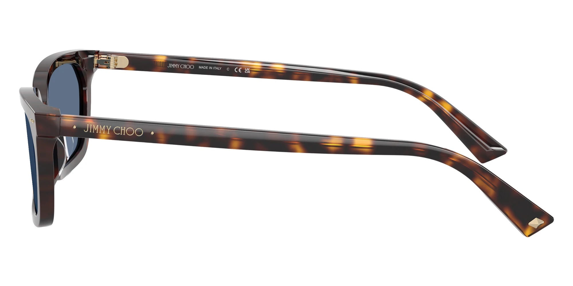 Havana (500280) Sunglasses with Blue lenses (JC5050U 500280 55) by Jimmy Choo™. Size: 55-16-140, Shape: Rectangle, Material: Acetate.