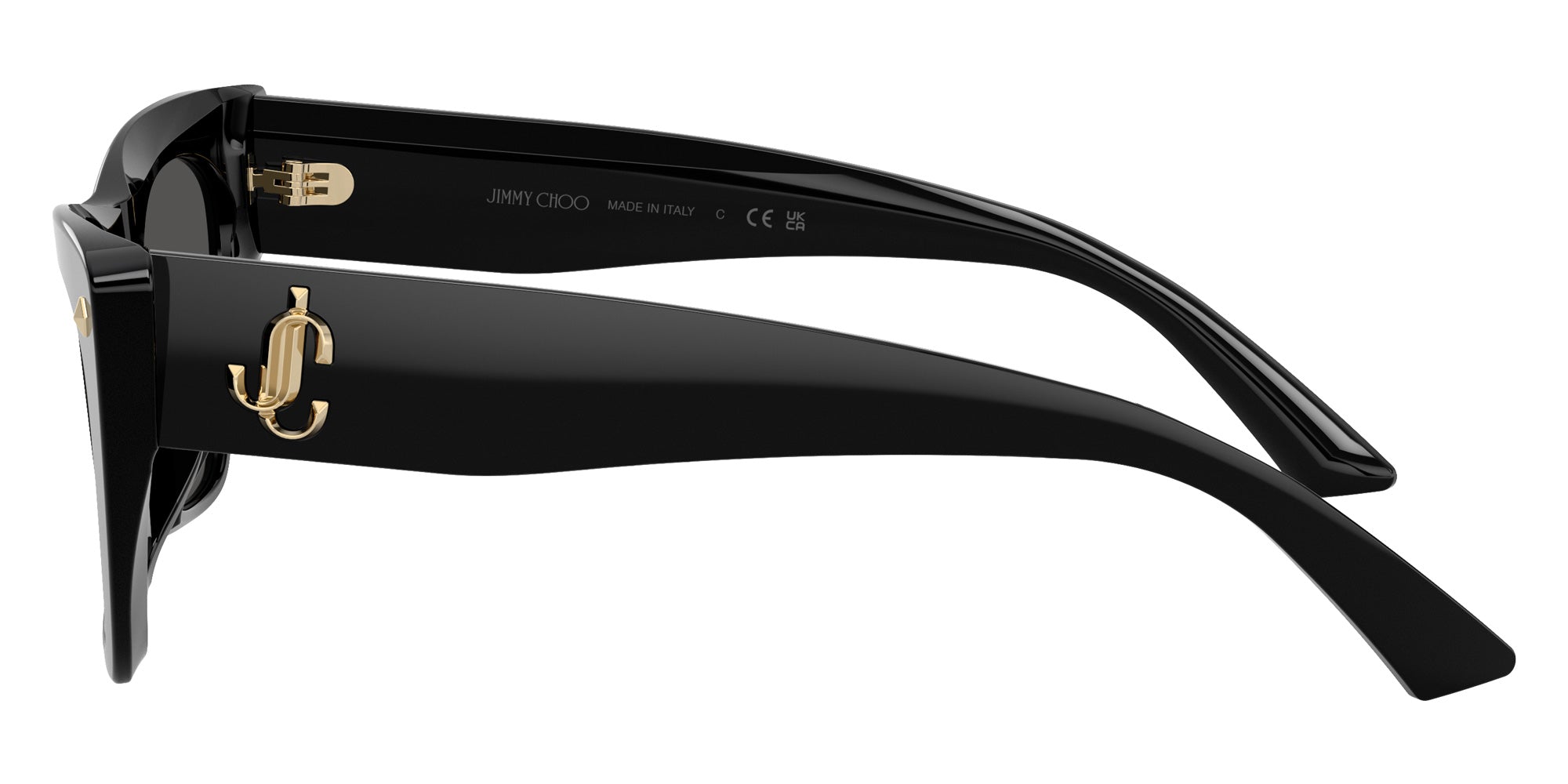 Black (500087) Sunglasses with Dark Gray lenses (JC5062U 500087 53) by Jimmy Choo. Size: 53-16-140, Shape: Cat-Eye, Material: Acetate.