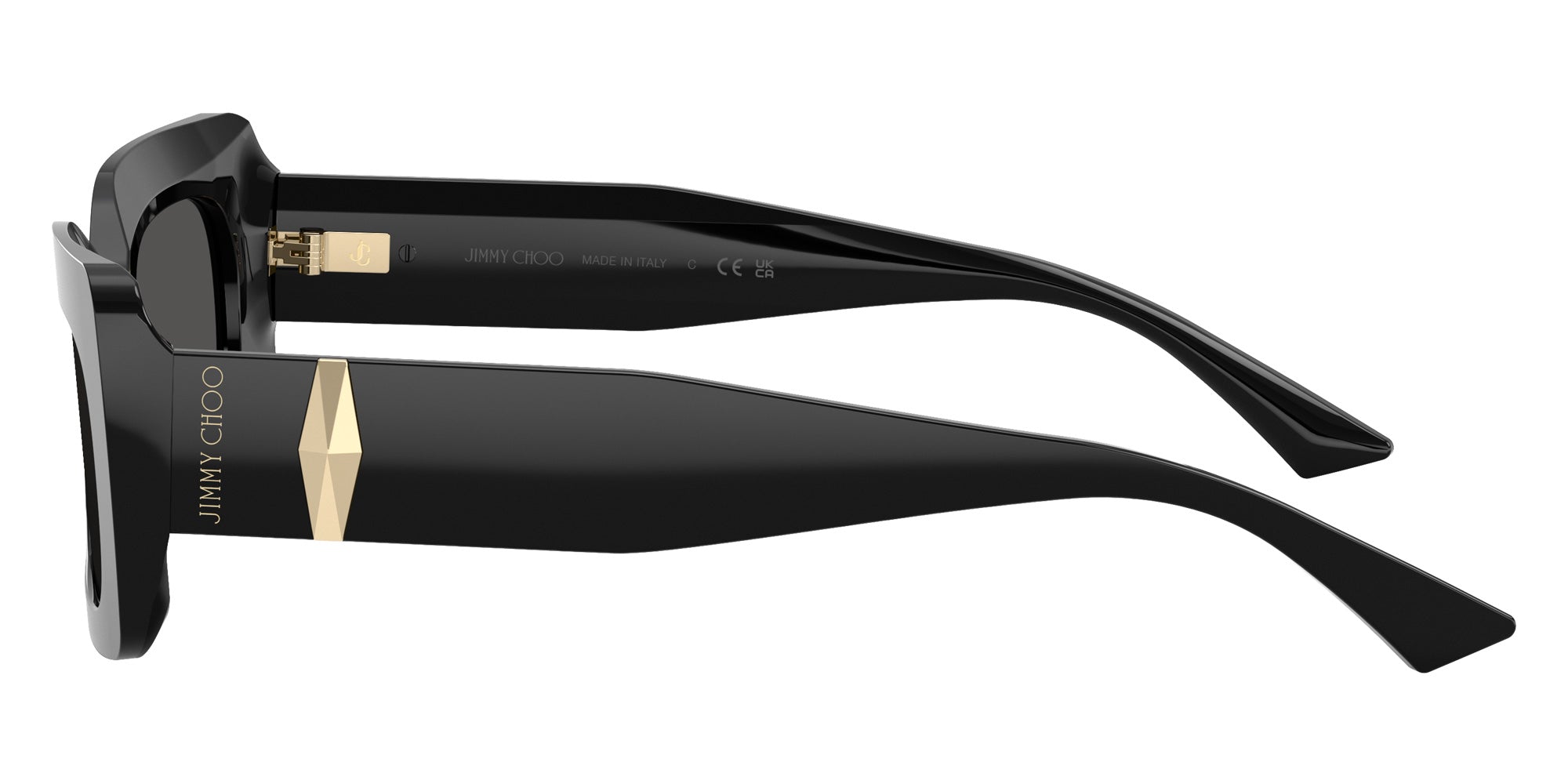 Black (500087) Sunglasses with Dark Gray lenses (JC5067 500087 53) by Jimmy Choo. Size: 53-18-140, Shape: Rectangle, Material: Acetate.