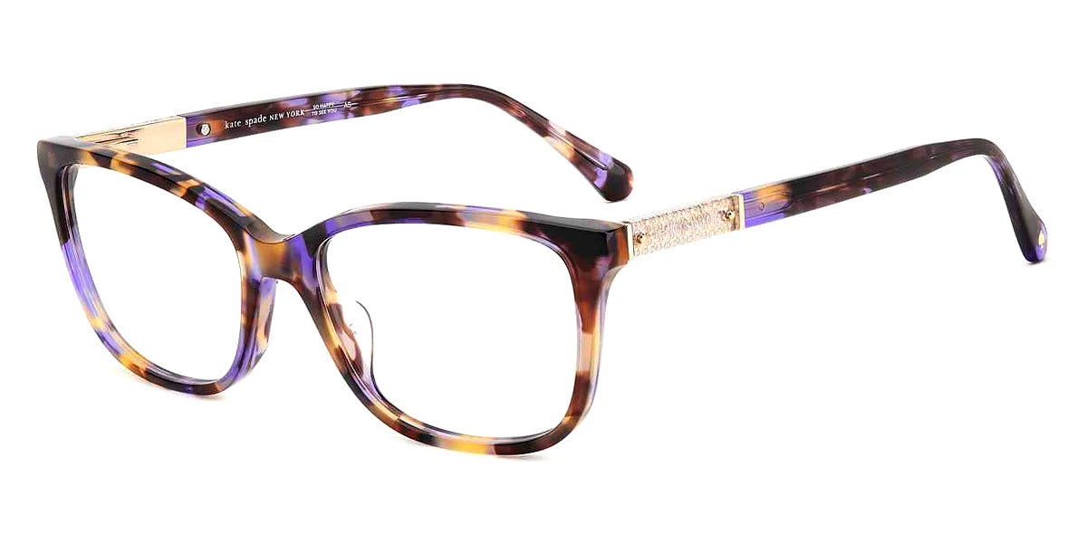 AMABELLA/G Eyeglasses by Kate Spade™. The rectangle shape design feature a full rim acetate and metal regular frame. This model is available in eight different color combinations and sizes. Kate Spade eyeglasses are sleek and stylish readers that provide an elegant look and ensure superior optical clarity. Equipped with top-grade lenses that block the blue light emitted from your digital devices, Kate Spade eyeglasses are a perfect choice for those customers looking for stylish and efficient eyewear. The collection offers a wide range of frames shapes, including oval, round, square, and rectangular, making it easy to pick up a new pair of classy eyeglasses that will perfectly complement unique face shape and size and add an elegant look with a dash of playfulness.
