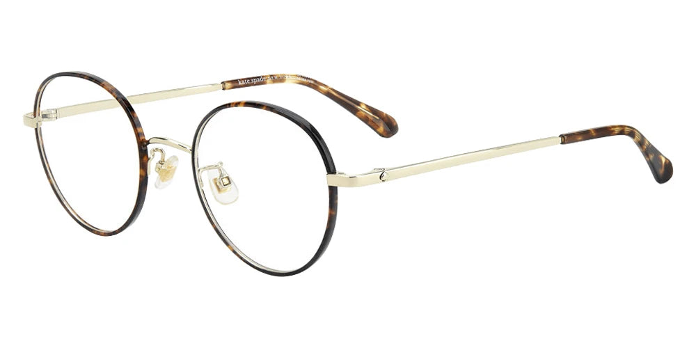 HELKA/N/FJ Eyeglasses by Kate Spade™. The round shape design feature a full rim titanium alloy frame. This model is available in three different color combinations and sizes. Kate Spade eyeglasses are sleek and stylish readers that provide an elegant look and ensure superior optical clarity. Equipped with top-grade lenses that block the blue light emitted from your digital devices, Kate Spade eyeglasses are a perfect choice for those customers looking for stylish and efficient eyewear. The collection offers a wide range of frames shapes, including oval, round, square, and rectangular, making it easy to pick up a new pair of classy eyeglasses that will perfectly complement unique face shape and size and add an elegant look with a dash of playfulness.