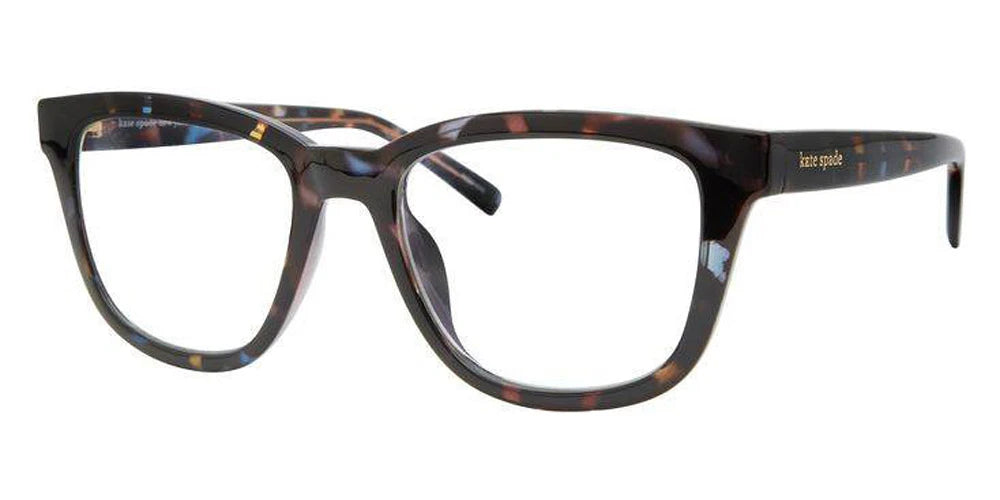 JAZELLE/BB Eyeglasses by Kate Spade™. The square shape design feature a full rim cellulose prop. inj frame. This model is available in three different color combinations and sizes. Kate Spade eyeglasses are sleek and stylish readers that provide an elegant look and ensure superior optical clarity. Equipped with top-grade lenses that block the blue light emitted from your digital devices, Kate Spade eyeglasses are a perfect choice for those customers looking for stylish and efficient eyewear. The collection offers a wide range of frames shapes, including oval, round, square, and rectangular, making it easy to pick up a new pair of classy eyeglasses that will perfectly complement unique face shape and size and add an elegant look with a dash of playfulness.