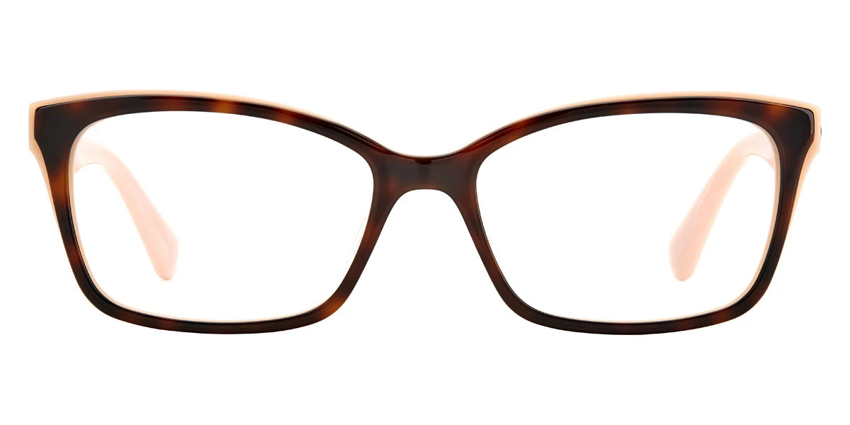 Jeri Eyeglasses by Kate Spade™. Shape: Rectangle, Material: Plastic, Frame Type: Full Rim. This model is available in fourteen different color combinations and sizes. Kate Spade eyeglasses are sleek and stylish readers that provide an elegant look and ensure superior optical clarity. Equipped with top-grade lenses that block the blue light emitted from your digital devices, Kate Spade eyeglasses are a perfect choice for those customers looking for stylish and efficient eyewear. The collection offers a wide range of frames shapes, including oval, round, square, and rectangular, making it easy to pick up a new pair of classy eyeglasses that will perfectly complement unique face shape and size and add an elegant look with a dash of playfulness.