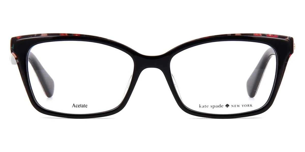Black Pattern (0INA) Eyeglasses (JERI 0INA 52) by Kate Spade™. Size: 52-16-140, Shape: Rectangle, Material: Acetate.