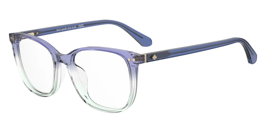 Blue Green (0RNB) Eyeglasses (JOLIET/F 0RNB 53) by Kate Spade™. Size: 53-17-140, Shape: Square, Material: Acetate and Metal.
