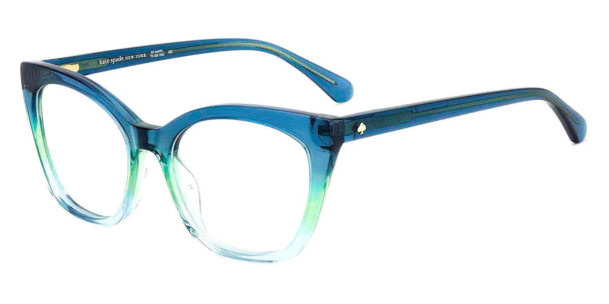 Teal Blue (05MZ) Eyeglasses (LELIA 05MZ 52) by Kate Spade™. Size: 52-17-140, Shape: Cat-Eye, Material: Acetate.