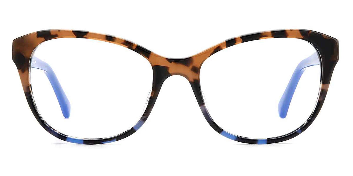 NATALY Eyeglasses by Kate Spade™. The cat-eye / butterfly shape design feature a full rim acetate frame. This model is available in four different color combinations and sizes. Kate Spade eyeglasses are sleek and stylish readers that provide an elegant look and ensure superior optical clarity. Equipped with top-grade lenses that block the blue light emitted from your digital devices, Kate Spade eyeglasses are a perfect choice for those customers looking for stylish and efficient eyewear. The collection offers a wide range of frames shapes, including oval, round, square, and rectangular, making it easy to pick up a new pair of classy eyeglasses that will perfectly complement unique face shape and size and add an elegant look with a dash of playfulness.