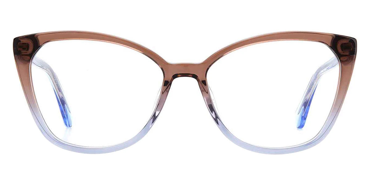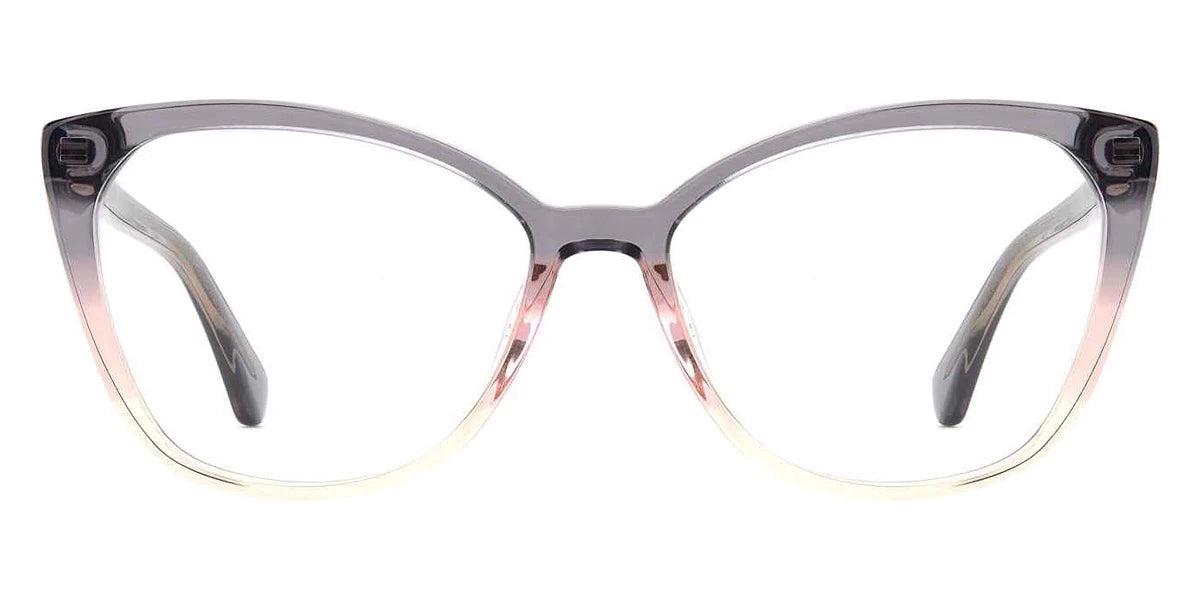 ZAHRA Eyeglasses by Kate Spade™. The cat-eye / butterfly shape design feature a full rim acetate frame. This model is available in four different color combinations and sizes. Kate Spade eyeglasses are sleek and stylish readers that provide an elegant look and ensure superior optical clarity. Equipped with top-grade lenses that block the blue light emitted from your digital devices, Kate Spade eyeglasses are a perfect choice for those customers looking for stylish and efficient eyewear. The collection offers a wide range of frames shapes, including oval, round, square, and rectangular, making it easy to pick up a new pair of classy eyeglasses that will perfectly complement unique face shape and size and add an elegant look with a dash of playfulness.