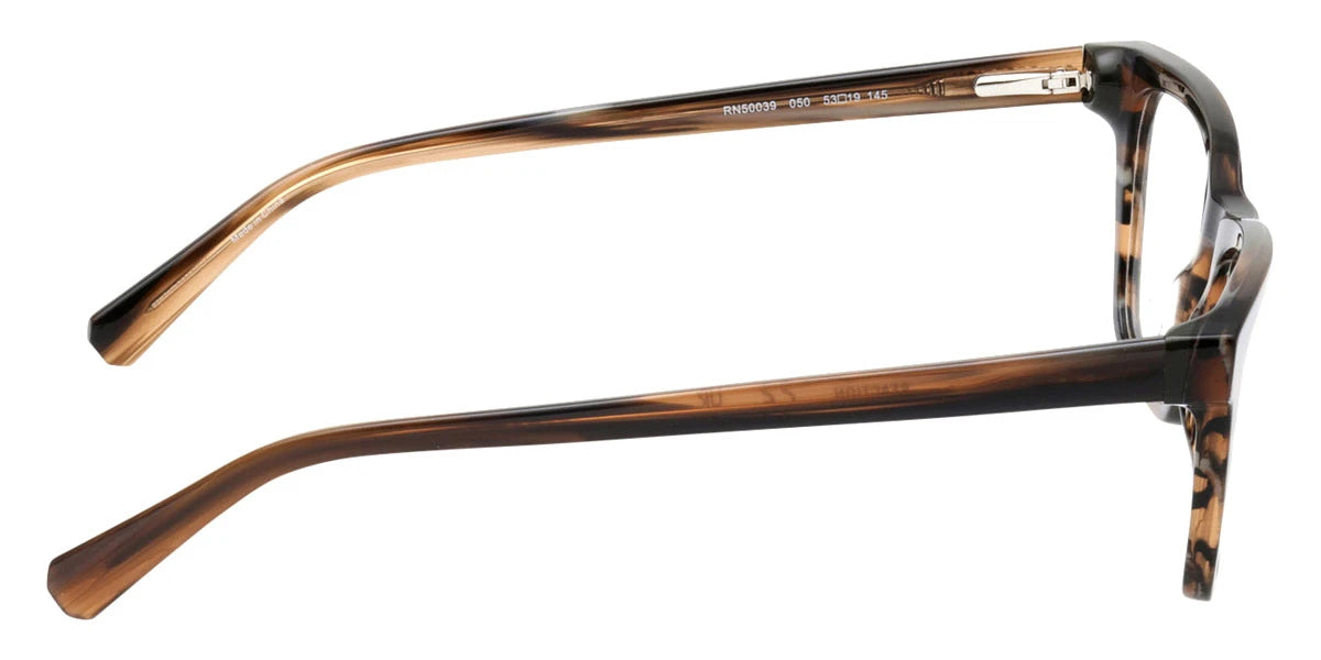Gray/Horn (005) Eyeglasses (RN50039 005 53) by Kenneth Cole™. Size: 53-19-145, Shape: Square, Material: Plastic.