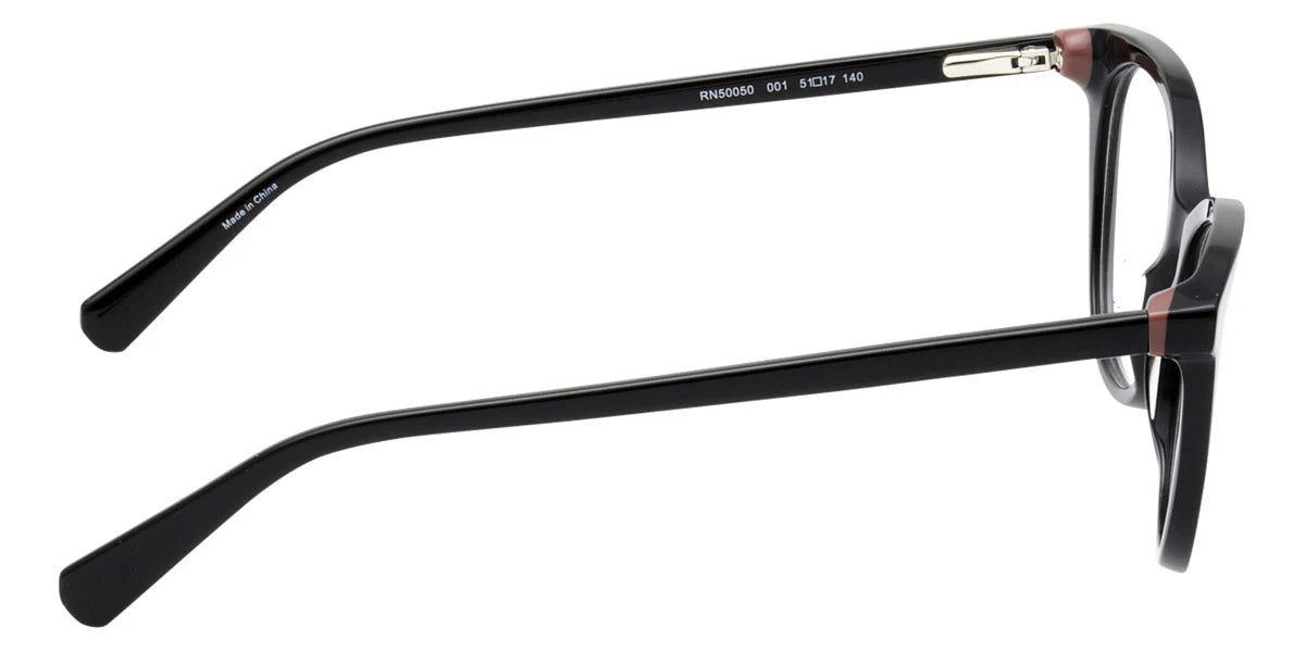Shiny Black (001) Eyeglasses (RN50050 001 51) by Kenneth Cole™. Size: 51-17-140, Shape: Round, Material: Plastic.