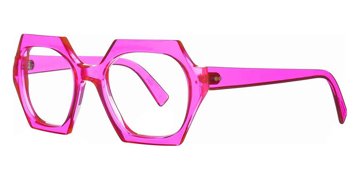 Penelope Eyeglasses by Kirk & Kirk™. The geometric shape design feature a full rim acrylic frame. This model is available in eleven different color combinations and sizes. Penelope is a stunning oversized hexagonal frame, perfect for powerhouses who want to catch the eye and keep it. Delicately balanced so as not to feel clunky, Penelope comes in 9 colours, each screaming personality.