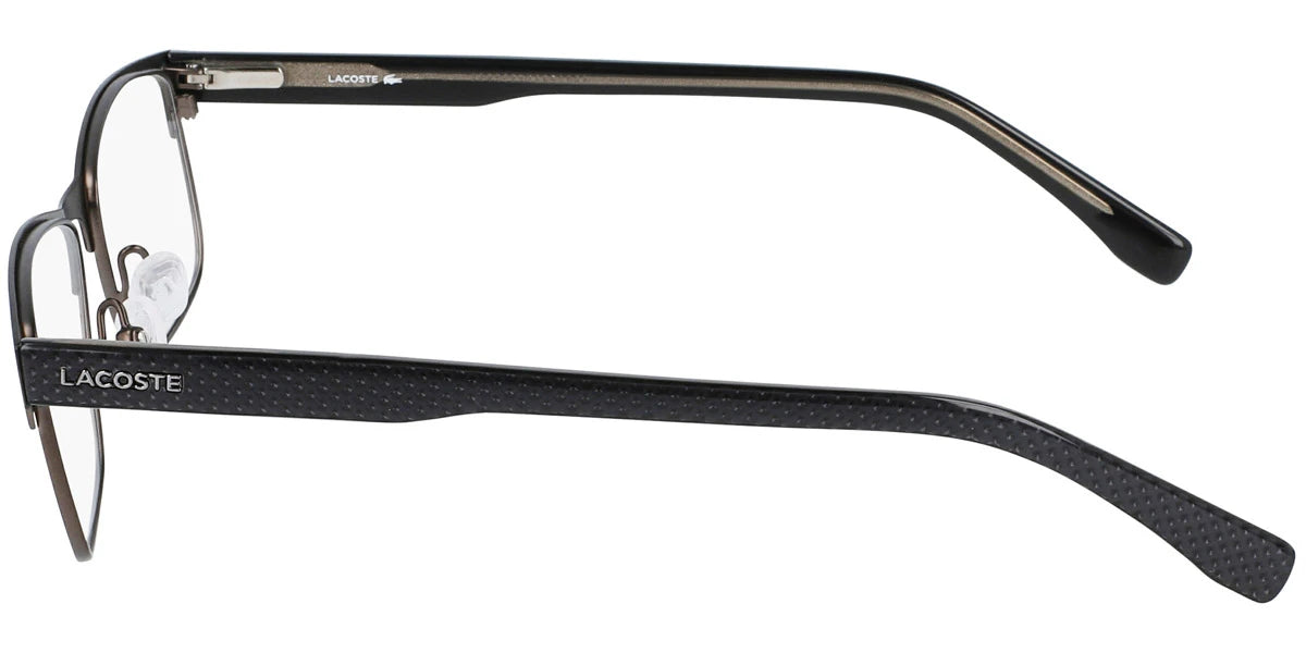 Matte Black (001) Eyeglasses (L2217 001 52) by Lacoste™. Size: 52-17-140, Shape: Rectangle, Material: Metal.