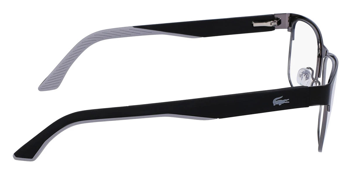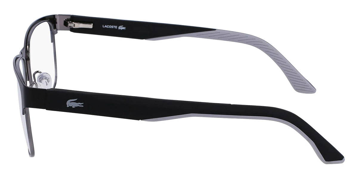 Black (001) Eyeglasses (L2291 001 56) by Lacoste™. Size: 56-17-140, Shape: Square, Material: Metal.