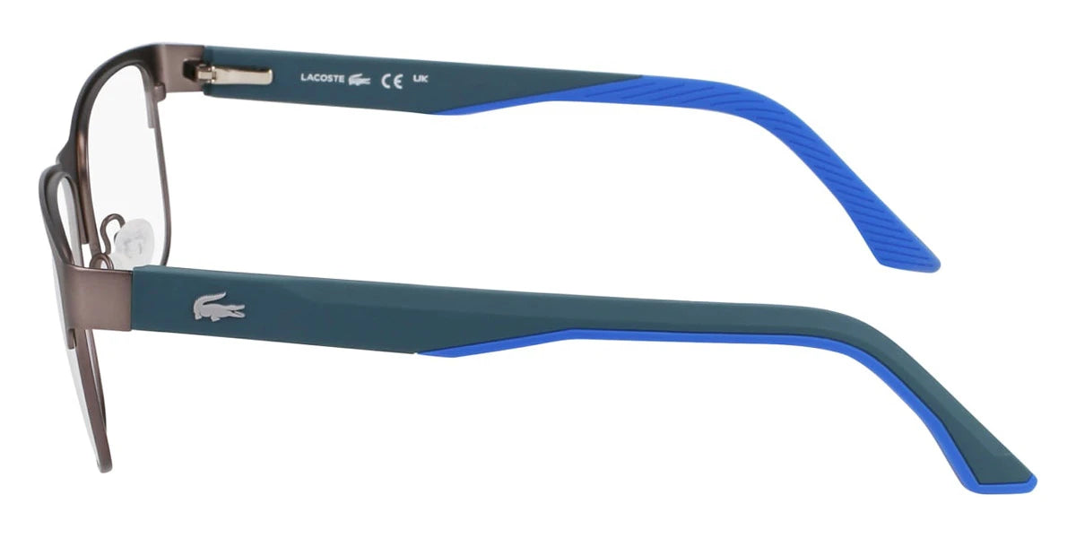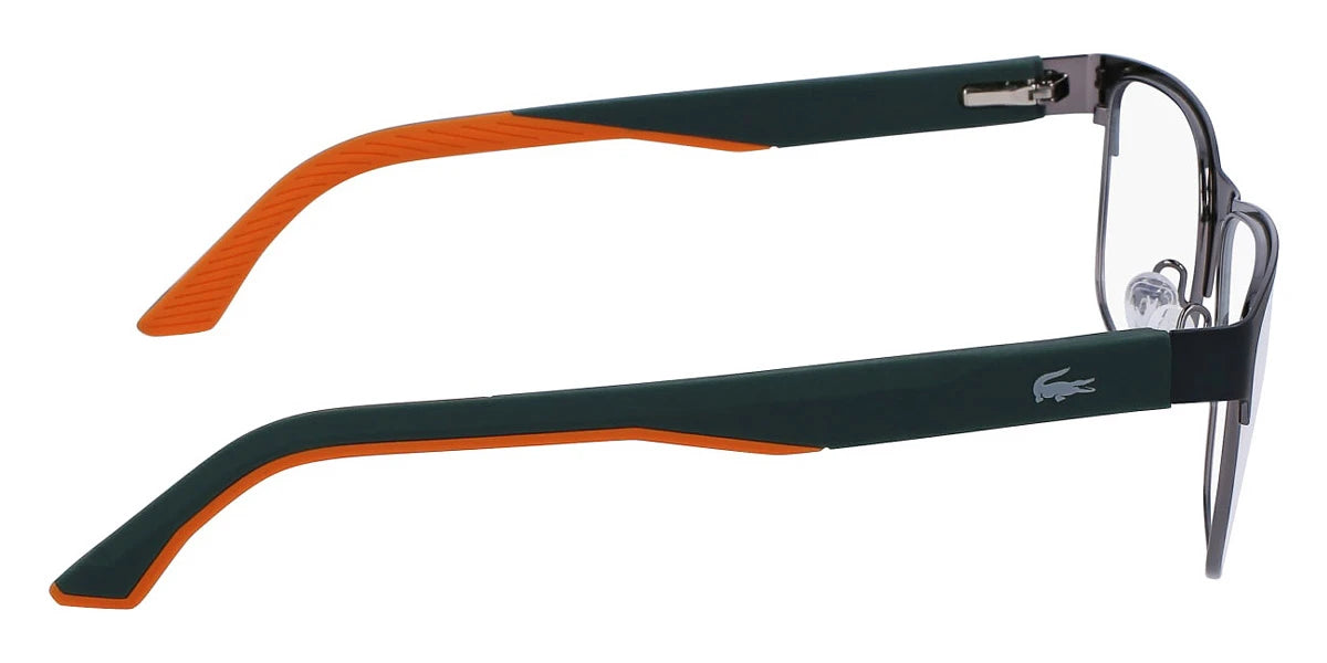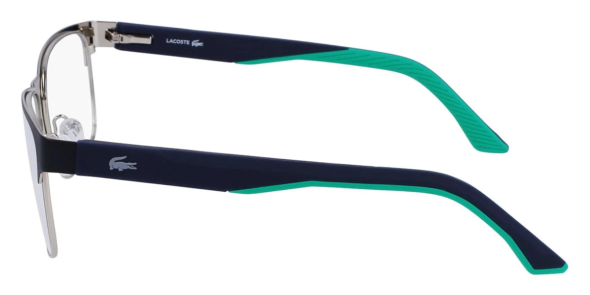 L2291 Eyeglasses by Lacoste™. The square shape design feature a full rim metal frame. This model is available in eight different color combinations and sizes. A French brand Lacoste is famous all over the world for its recognizable logotype with a green crocodile. Established in 1933 by the young tennis player René Lacoste and André Gillier, the company produces sportswear, clothing, leather goods, towels, footwear, fragrances, home wear, underwear, watches, and eyewear for men and women. Being a popular brand among the avant-garde, young, and modern people, nowadays, Lacoste has a great number of boutiques in 120 countries, including the United States, United Kingdom, Australia, and Canada. Eyewear collections from the celebrated brand feature sports roots of the manufacturer and emit elegance and optimism.