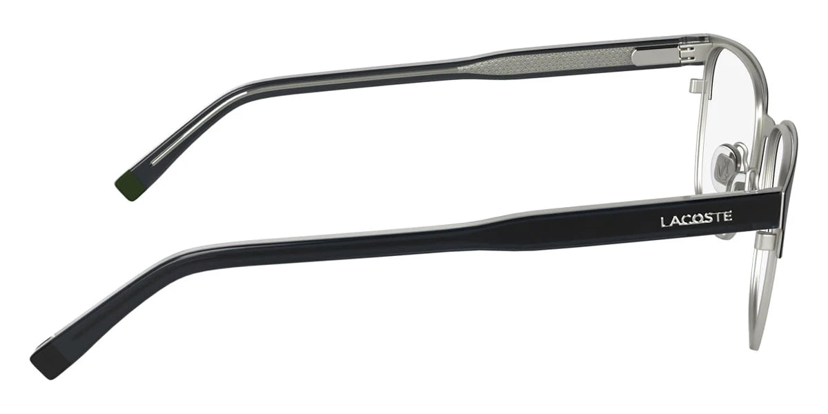Matte Black (002) Eyeglasses (L2304 002 53) by Lacoste™. Size: 53-18-145, Shape: Rectangle, Material: Metal.