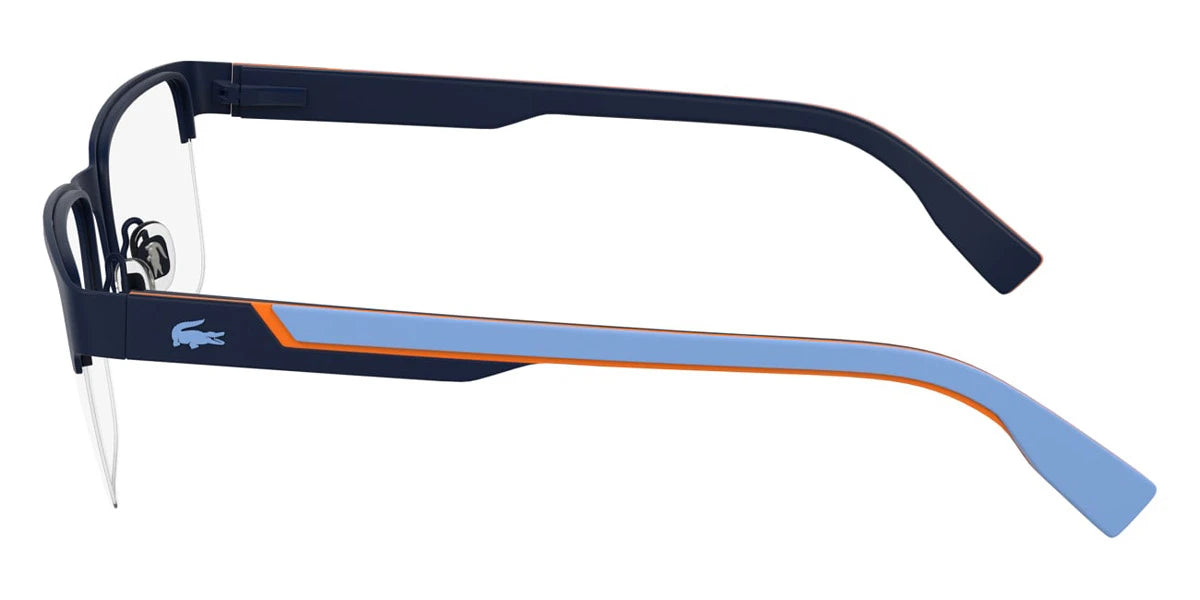 L2305 Eyeglasses by Lacoste™. The rectangle shape design feature a semi rimless metal frame. This model is available in eight different color combinations and sizes. A French brand Lacoste is famous all over the world for its recognizable logotype with a green crocodile. Established in 1933 by the young tennis player René Lacoste and André Gillier, the company produces sportswear, clothing, leather goods, towels, footwear, fragrances, home wear, underwear, watches, and eyewear for men and women. Being a popular brand among the avant-garde, young, and modern people, nowadays, Lacoste has a great number of boutiques in 120 countries, including the United States, United Kingdom, Australia, and Canada. Eyewear collections from the celebrated brand feature sports roots of the manufacturer and emit elegance and optimism.