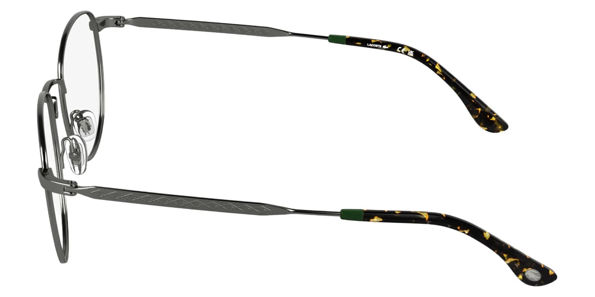 Dark Gunmetal (035) Eyeglasses (L2315 035 52) by Lacoste™. Size: 52-20-140, Shape: Rectangle, Material: Metal.