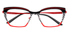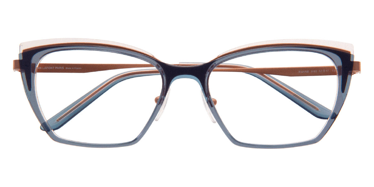 Jeanne Eyeglasses by LaFont™. The cat-eye shape design feature a full rim acetate and metal frame. This model is available in four different color combinations and sizes. Unleash your inner fashion maverick with the Jeanne frames by LaFont. These bold and contemporary eyeglasses are a testament to the brand's commitment to pushing boundaries. The Cat-Eye design commands attention and exudes confidence, making a definitive statement wherever you go. Made from high-quality acetate with metal details, the Jeanne frames boast vibrant color combinations and striking patterns. Whether you're attending a high-profile event or strolling through the city streets, this model is a must-have accessory for the modern trendsetter.