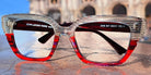 Jodie Eyeglasses by LaFont™. The cat-eye shape design feature a full rim acetate frame. This model is available in four different color combinations and sizes. Let the Jodie eyewear model by LaFont transport you to a celestial realm of style and sophistication. The translucent crystal acetate frame exudes an air of mystique, while the delicate detailing on the temples adds a touch of celestial elegance. The Jodie's lightweight construction and slim temples provide a comfortable fit for all-day wear. Whether you're strolling through a bustling city or attending a glamorous soirée, these eyeglasses will ensure you shine like a radiant moonbeam, turning heads and captivating hearts with your celestial charm.