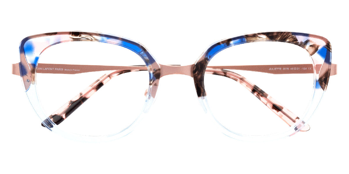Blue (3178) Eyeglasses (Juliette 3178 49) by LaFont™. Size: 49-21-134, Shape: Cat-Eye, Material: Acetate and Metal.