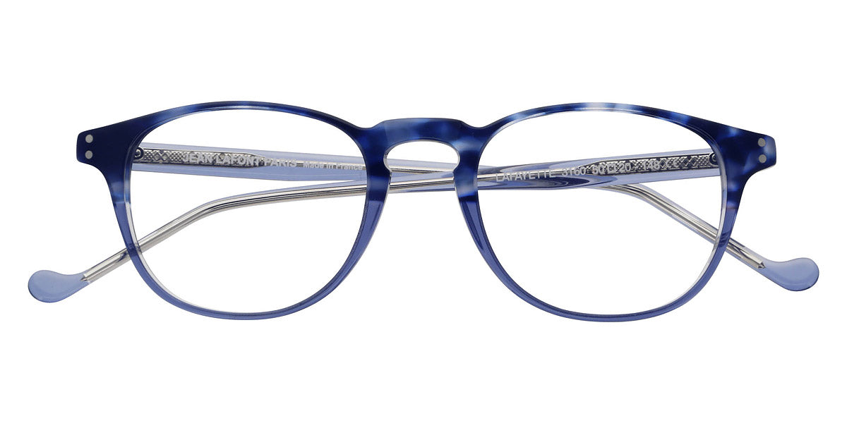 Lafayette Eyeglasses by LaFont™. The wayfarer shape design feature a full rim acetate frame. This model is available in four different color combinations and sizes. Let your inner dreamer take flight with the Lafayette eyeglasses by LaFont. These frames are a delightful fusion of playful charm and modern elegance. The soft hues create a whimsical palette that instantly brightens your look. Crafted from premium acetate, these Wayfarer frames provide a comfortable fit and lasting durability. Whether you're strolling through a sun-drenched garden or attending a garden party, these eyeglasses will transport you to a world of enchantment and joy.