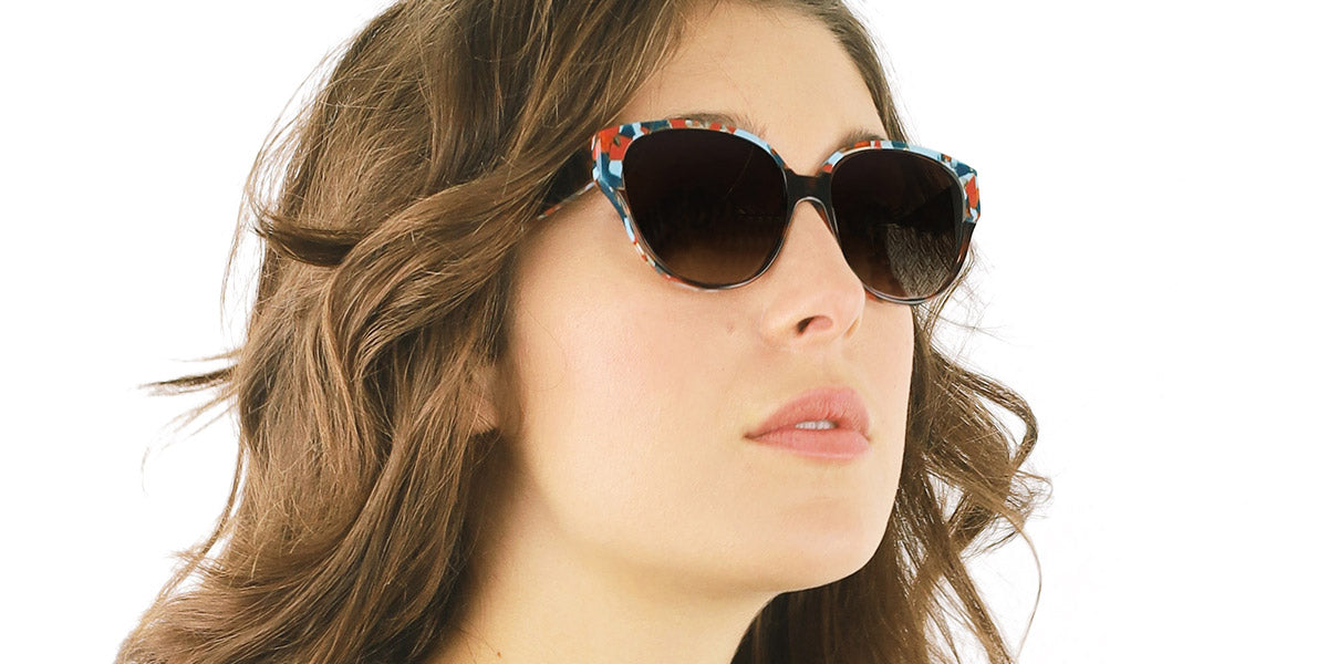 Madras Sunglasses by LaFont™. The butterfly shape design feature a full rim acetate frame. This model is available in four different color combinations and sizes. Elevate your style with Serene Verve, a visionary fusion of sophistication and contemporary allure. Crafted with precision and artistic flair, these sunglasses exude elegance in every detail. The slender acetate frame, delicately adorned with a graceful motif, accentuates your facial features while offering unparalleled comfort. Whether you're savoring a morning latte at your favorite cafe or leading a boardroom presentation, Madras ensures you leave a lasting impression of poised refinement.
