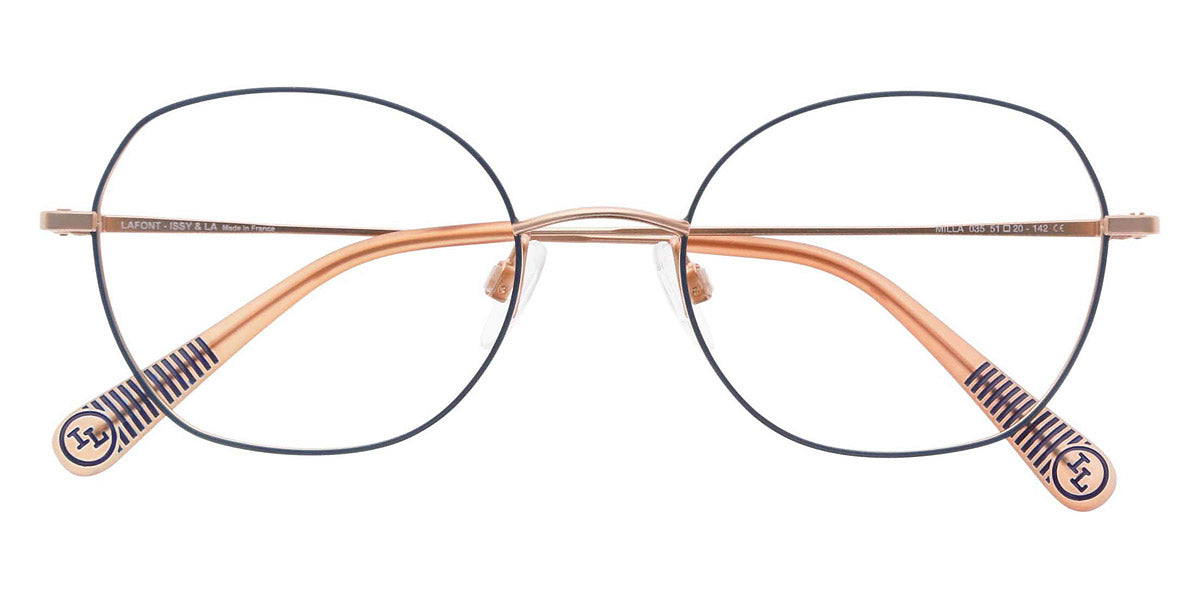 Milla Eyeglasses by LaFont™. The round shape design feature a full rim metal frame. This model is available in four different color combinations and sizes. Step into an otherworldly realm of elegance with the Milla model, where contemporary design harmonizes with celestial mystique. Crafted from premium metal, this LaFont eyewear masterpiece boasts a sleek silhouette and expertly adorned frame with delicate accents. The mesmerizing interplay of hues and opalescent finishes creates an ethereal allure, drawing admiring gazes wherever you go. Embrace the fusion of art and craftsmanship, and elevate your style to celestial heights with the Milla eyeglasses.