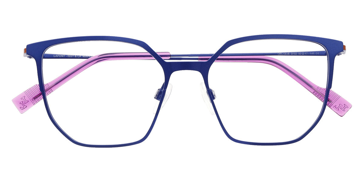 Blue (3752) Eyeglasses (Oblique 3752 52) by LaFont™. Size: 52-17-141, Shape: Cat-Eye, Material: Metal.