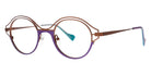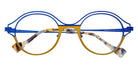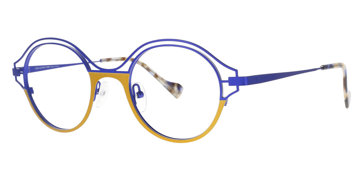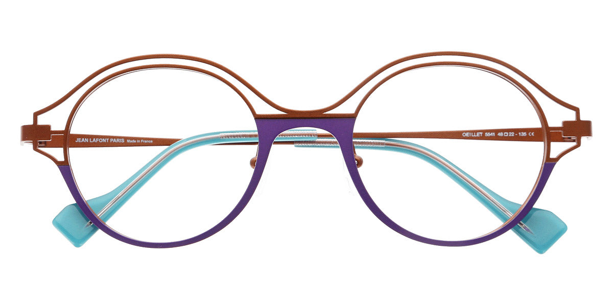 Oeillet Eyeglasses by LaFont™. The round shape design feature a full rim metal frame. This model is available in four different color combinations and sizes. LaFont is a French eyewear brand that was founded in 1923. The company is known for its stylish eyeglasses and sunglasses that are designed with a focus on both fashion and function. LaFont offers a wide range of frames in various styles and colors, from classic to modern, to suit a diverse range of tastes and preferences. The brand has become popular among fashion-forward individuals who value quality and style in their eyewear. LaFont is committed to using the finest materials and craftsmanship to create unique, durable, and comfortable eyewear that reflects the brand's heritage of French elegance and innovation. Today, LaFont presents its unique, sophisticated designs that are favored by celebrities and fashion influencers around the world. The brand's collections include a wide range of styles, from classic to contemporary, and are available in a variety of colors and patterns. The frames are made in France using traditional techniques and are known for their exceptional quality and attention to detail.