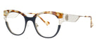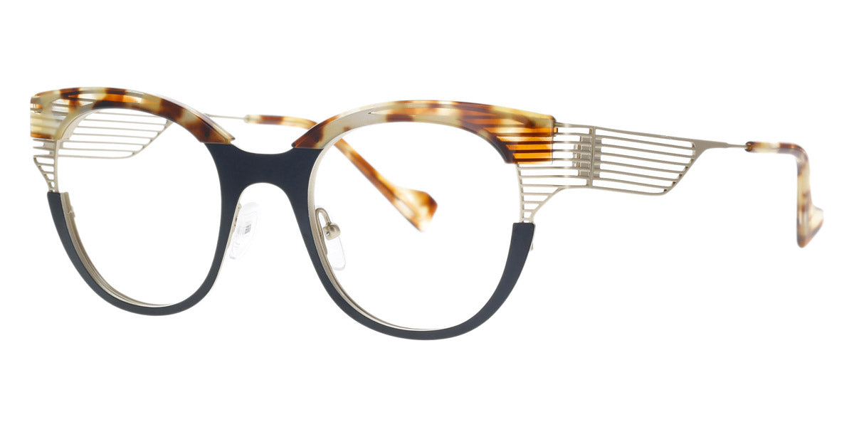 RAFFINEE Eyeglasses by LaFont™. The cat-eye shape design feature a full rim acetate and metal frame. This model is available in four different color combinations and sizes. LaFont is a French eyewear brand that was founded in 1923. The company is known for its stylish eyeglasses and sunglasses that are designed with a focus on both fashion and function. LaFont offers a wide range of frames in various styles and colors, from classic to modern, to suit a diverse range of tastes and preferences. The brand has become popular among fashion-forward individuals who value quality and style in their eyewear. LaFont is committed to using the finest materials and craftsmanship to create unique, durable, and comfortable eyewear that reflects the brand's heritage of French elegance and innovation. Today, LaFont presents its unique, sophisticated designs that are favored by celebrities and fashion influencers around the world. The brand's collections include a wide range of styles, from classic to contemporary, and are available in a variety of colors and patterns. The frames are made in France using traditional techniques and are known for their exceptional quality and attention to detail.