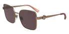 Amber Gold/Purple (738) Sunglasses (LO181S 738 56) by Longchamp™. Size: 56-17-140, Shape: Rectangle, Material: Metal.