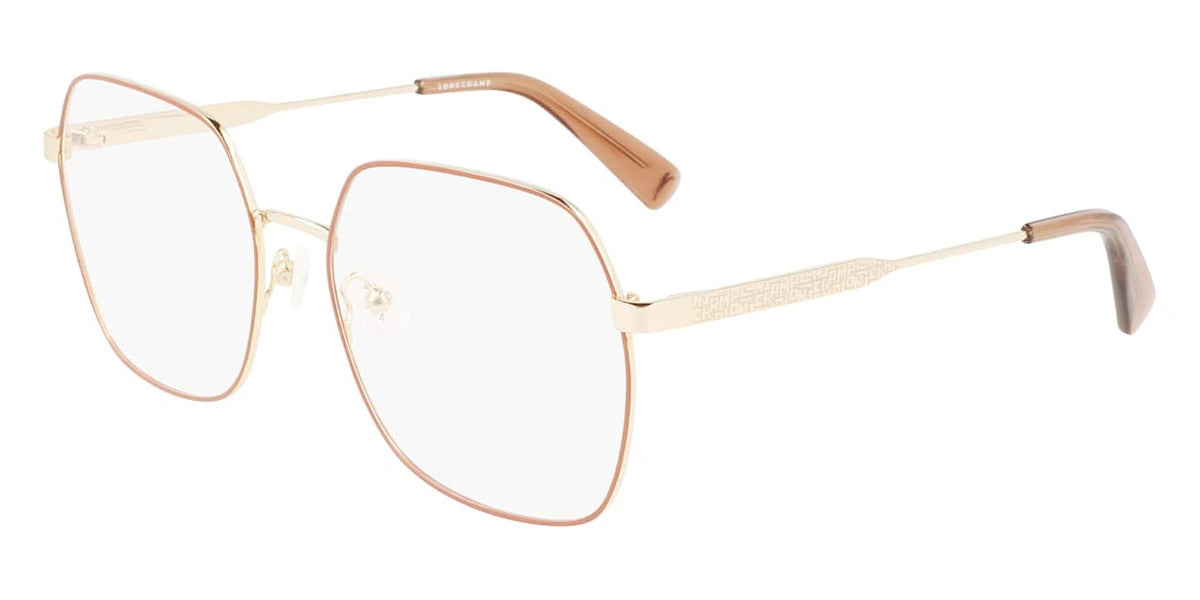Rose Gold (770) Eyeglasses (LON LO2148 770 55) by Longchamp™. Size: 55-17-140, Shape: Oversized, Material: Metal.