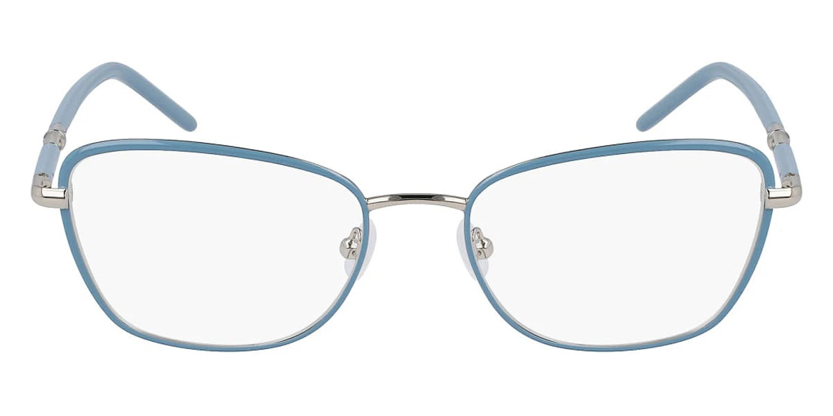 Silver/Azure (043) Eyeglasses (LO2155 043 53) by Longchamp™. Size: 53-18-140, Shape: Cat-Eye, Material: Metal.