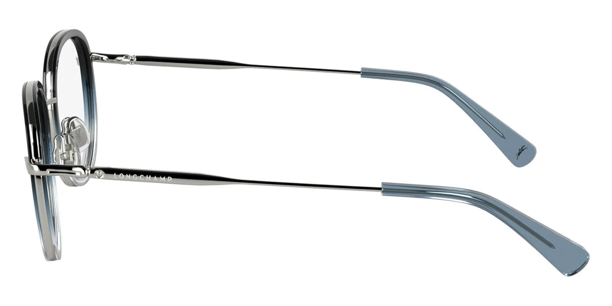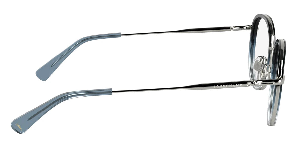 Silver/Gradient Blue (042) Eyeglasses (LO2168 042 48) by Longchamp™. Size: 48-19-140, Shape: Round, Material: Metal.